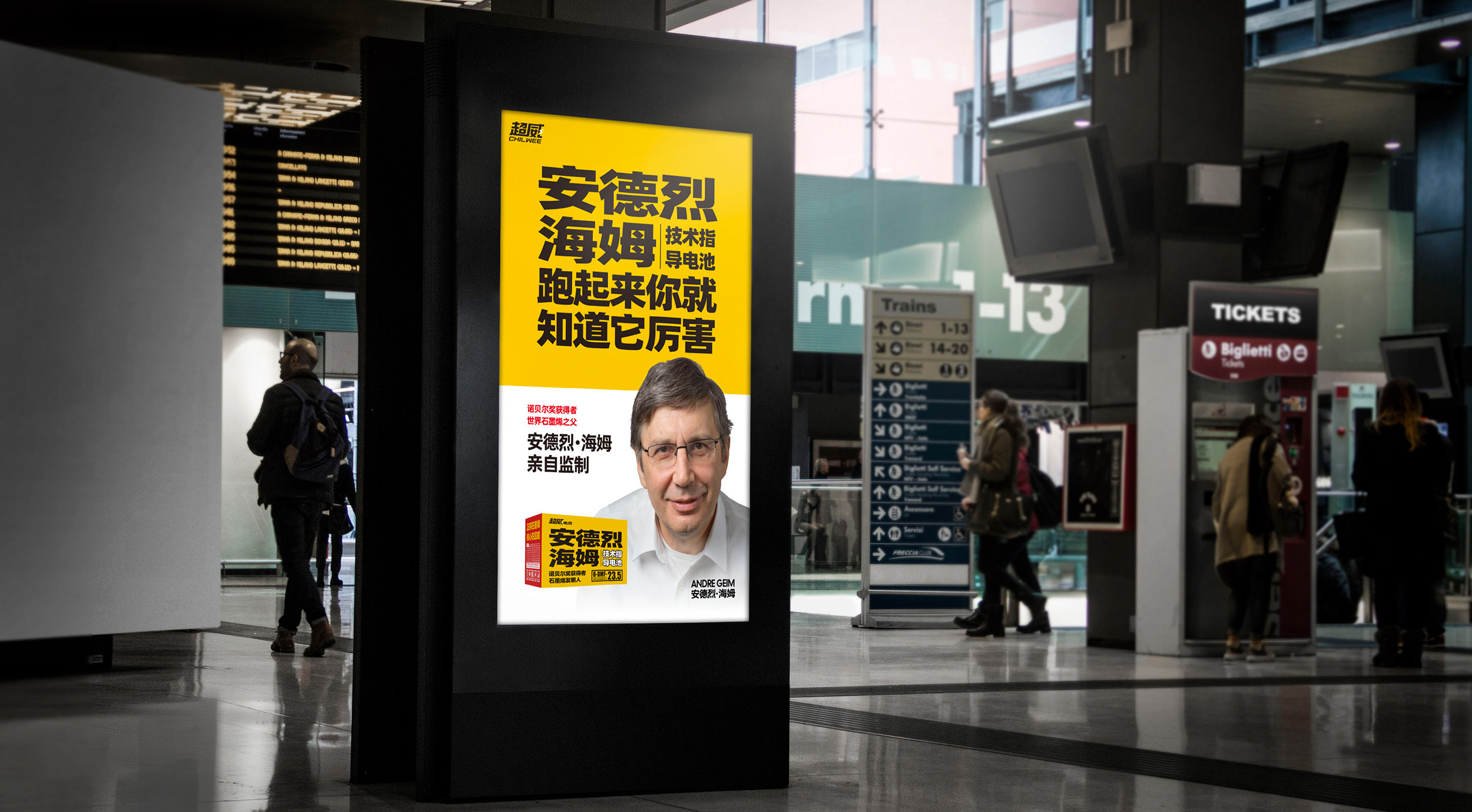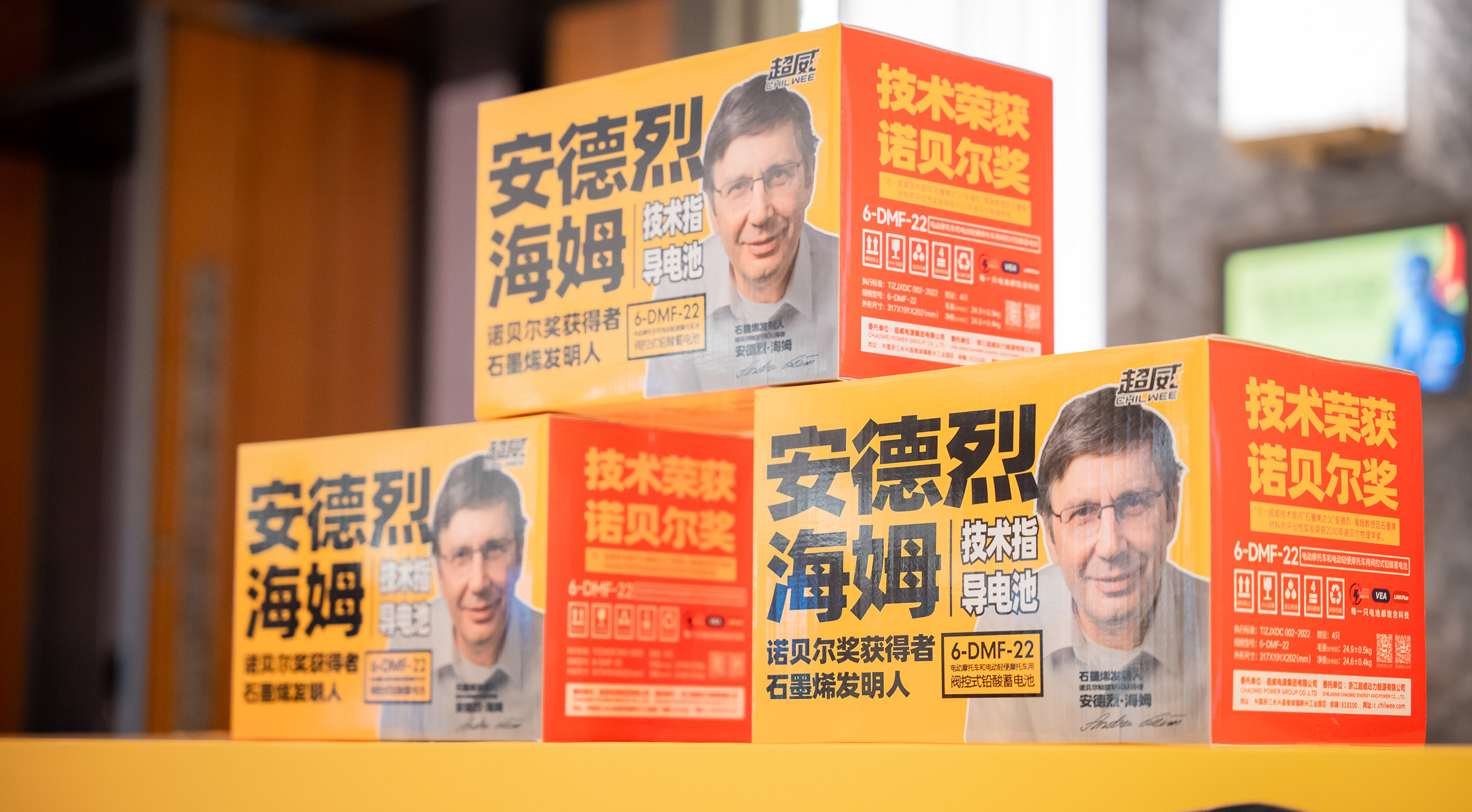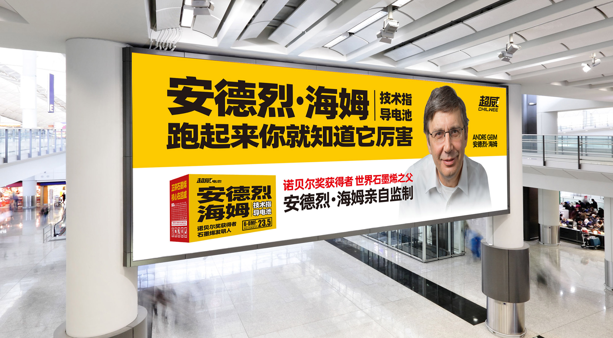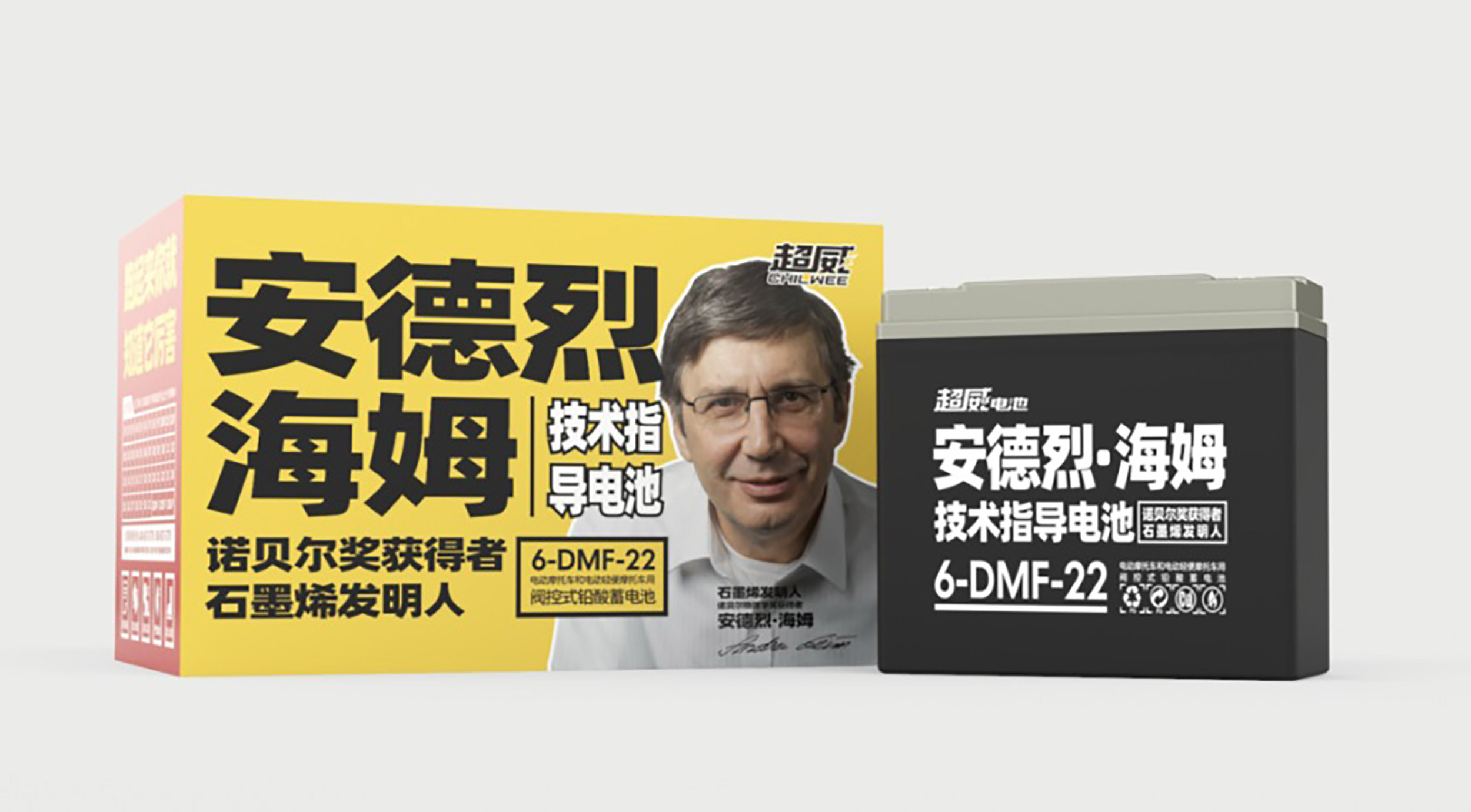 张默闻这厮一直强调,要极致用好、用透我们的科技巨星,这是超威与竞争对手对抗的一大优势,这一观点得到了超威董事长周明明的大力支持。所以,在包装和平面升级中,最大的亮点就是增设了安德烈·海姆教授的个人肖像,以更加直观的形式告诉消费者,超威的这款超级单品拥有石墨烯之父、诺贝尔物理学奖获得者安德烈·海姆教授的正宗技术支持,拥有世界级的科学智慧,这一点毋庸置疑。