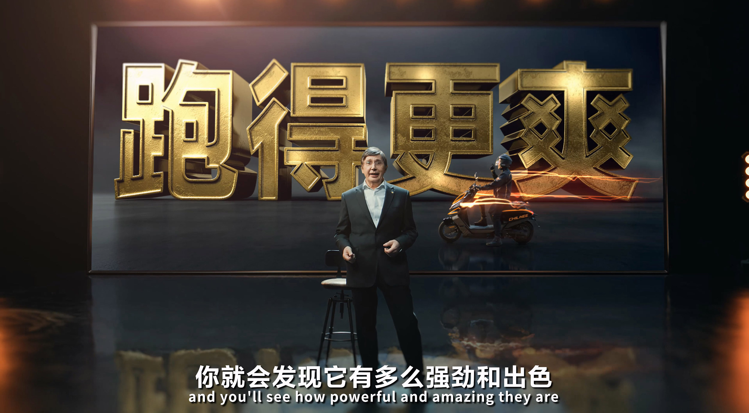 界无止,驭无境。超威产品宣传片开篇以一句“哲学化”的语言定调,将电池技术的升级与人类突破物理限制的探索精神相勾连。最后以一句“跑起来,你就知道它的厉害”收尾,亲切式呼应主题,形成“破界-行动-验证”的叙事闭环。此外,它还巧妙运用诺奖得主安德烈·海姆教授的权威身份,通过“石墨烯之父”“39项技术专利”“360°(度)体验全面升级”等标签,为超威构建起超级单品的技术金字塔尖,赋能产品动销。在画面表现上,该宣传片重点聚焦安德烈·海姆技术指导电池,全方位展示产品的包装魅力、研发魅力和性能魅力。