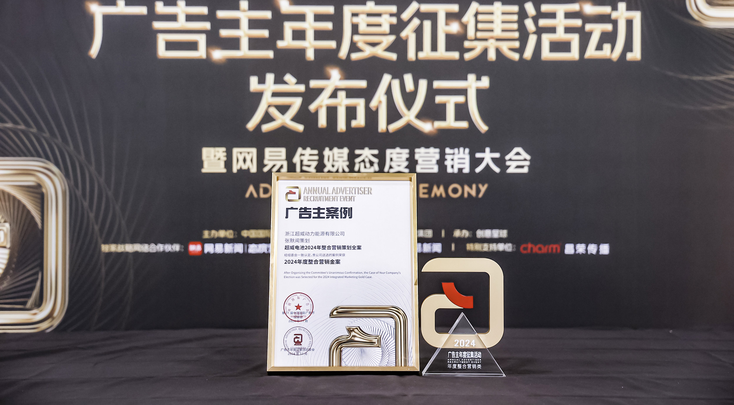 2024年11月28日,第31届中国国际广告节·广告主年度征集活动发布仪式在厦门国际会展中心隆重举行,广告主企业、媒体平台及品牌服务机构的众多行业翘楚,数百位精英人士齐聚鼓浪屿畔,共襄广告行业的年度盛宴。本次发布仪式上,张默闻策划与超威集团联合选送的《超威电池2024整合营销策划全案》经过层层激烈角逐,荣耀摘夺“2024年度整合营销金案”,龙头实力备受认可,特色全案权威认证,成功为行业输送品牌营销新范式。