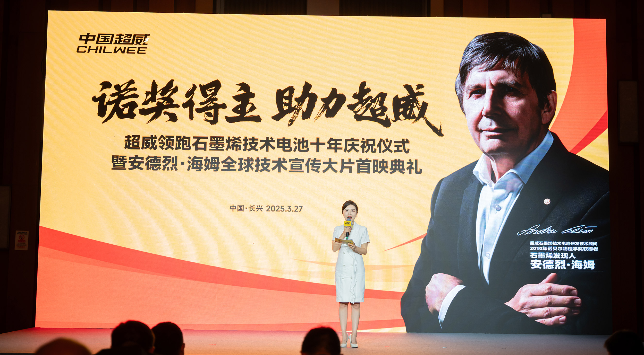 十年独霸,持续领跑!【诺奖得主 助力超威——超威领跑石墨烯技术电池十年庆祝仪式暨安德烈·海姆全球技术宣传大片首映典礼】圆满结束。此次活动不仅是超威集团石墨烯技术电池十年领跑的庆贺,更是超威与国际顶尖科研力量、顶尖策划力量携手迈入辉煌征程的新起点!