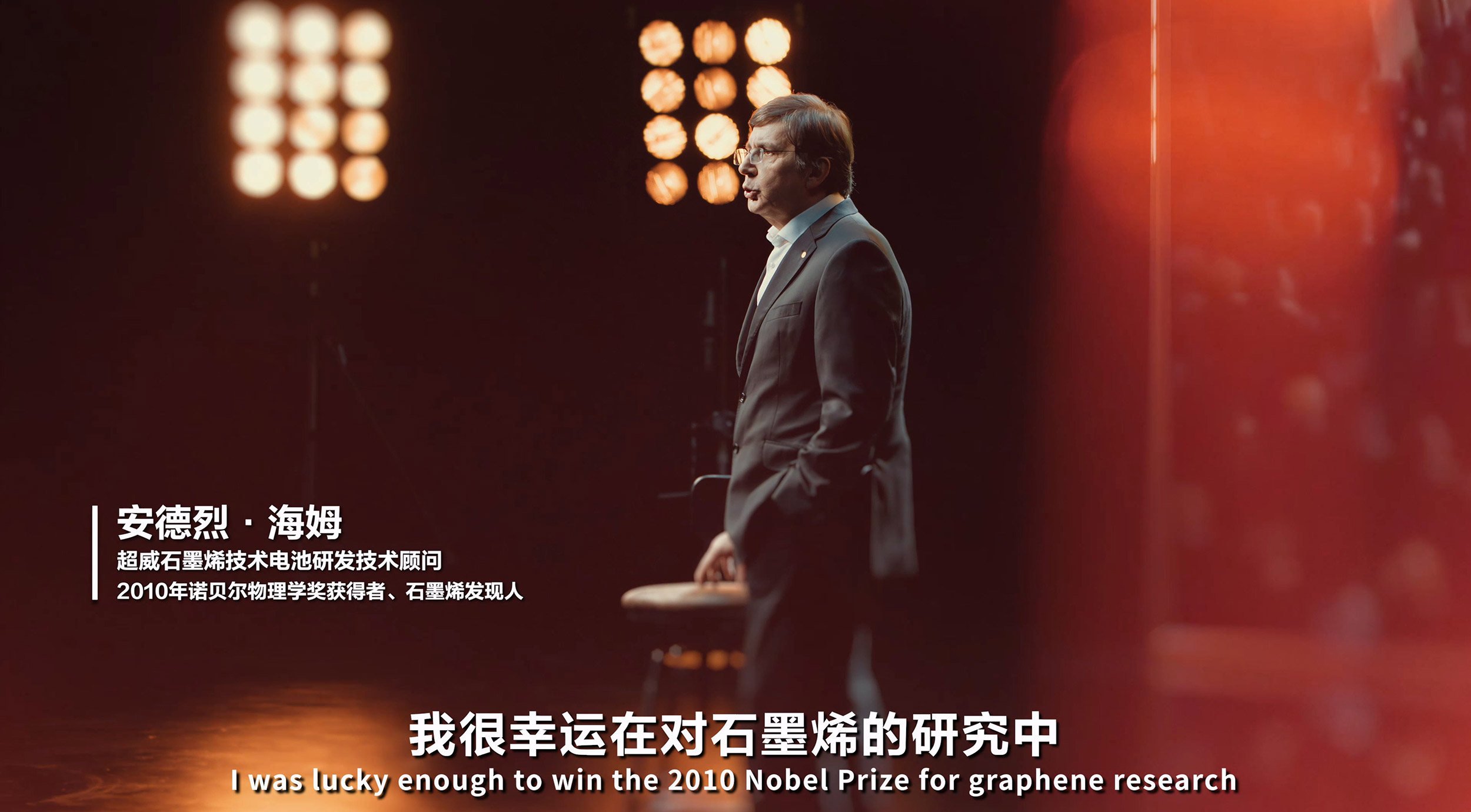 在宣传片创意之初,张默闻这厮表示,诺贝尔奖是一项国际性、世界级的荣誉,在国人甚至全世界人民的眼中,诺贝尔奖得主可以直接与权威性和专业性挂钩。此次宣传片重点就是要极大放大诺奖得主安德烈·海姆教授在全球石墨烯技术领域内的权威实力,让这位世界级大咖为超威从技术到品牌全面赋能。