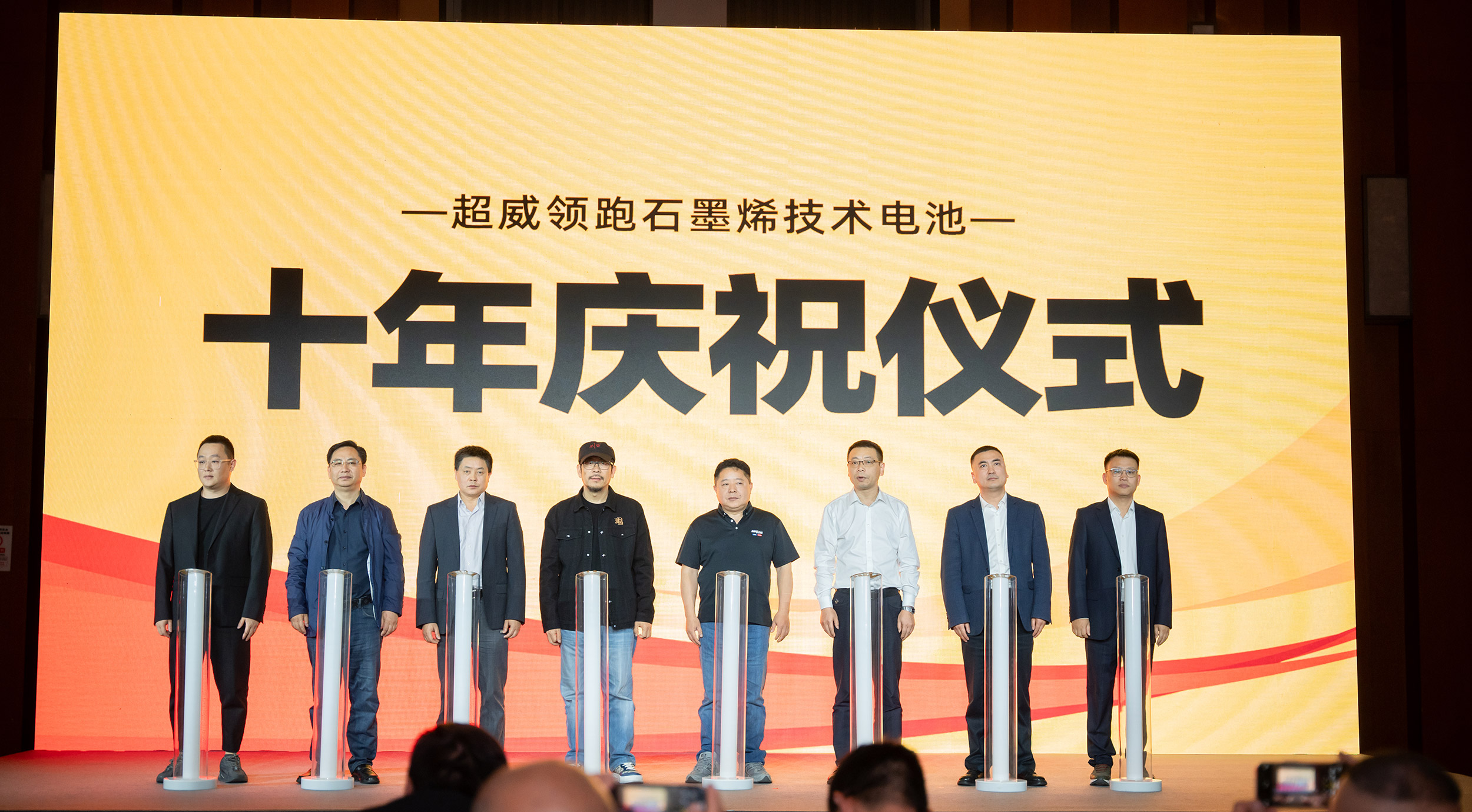 全球瞩目下,超威领跑石墨烯技术电池十年庆祝仪式隆重举行。超威高层领导与张默闻这厮共同按下“石墨烯能量柱”,此次仪式不仅致敬了超威石墨烯技术电池过去十年的辉煌成就,更是对未来超威持续领跑、推动石墨烯技术电池进步的美好展望。