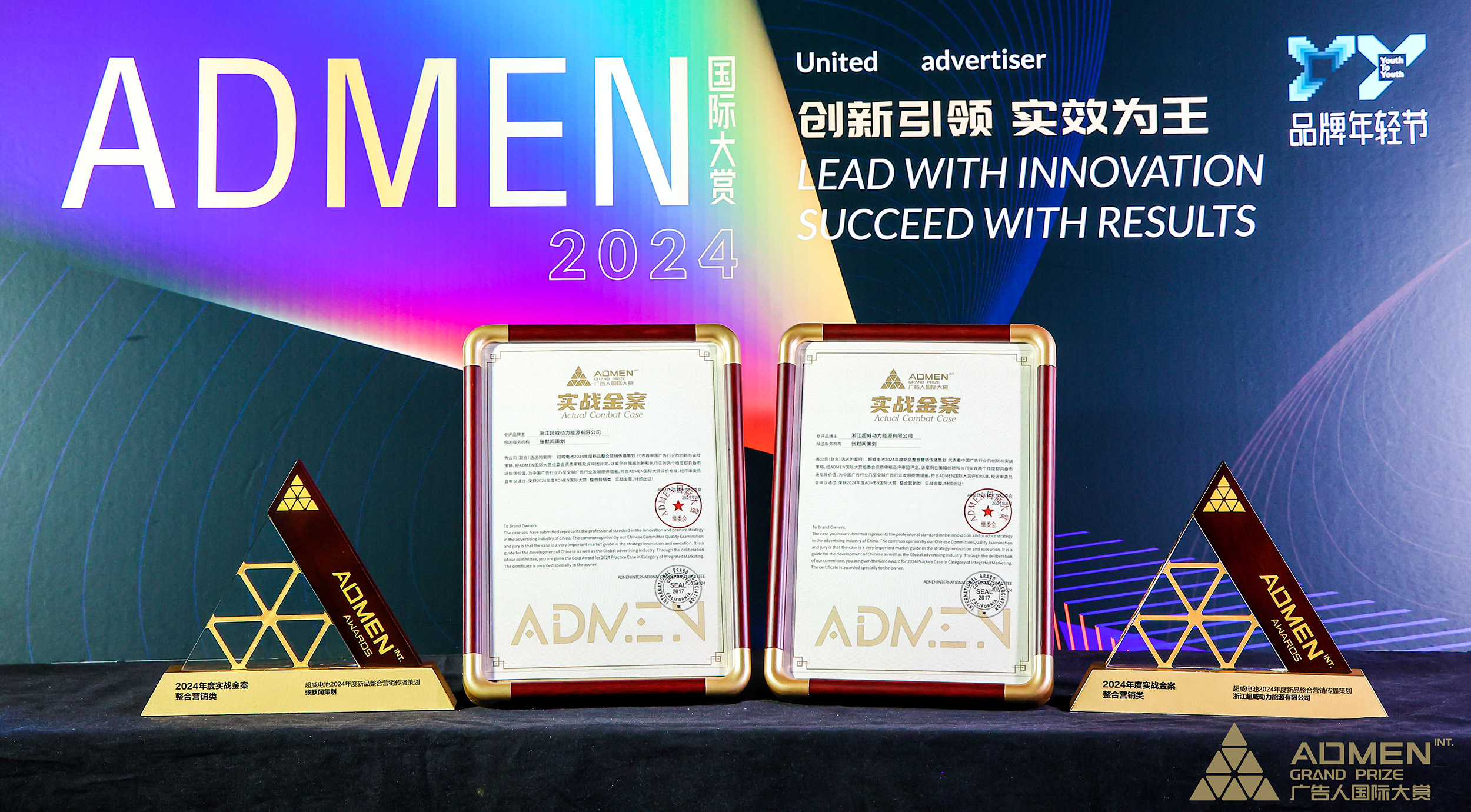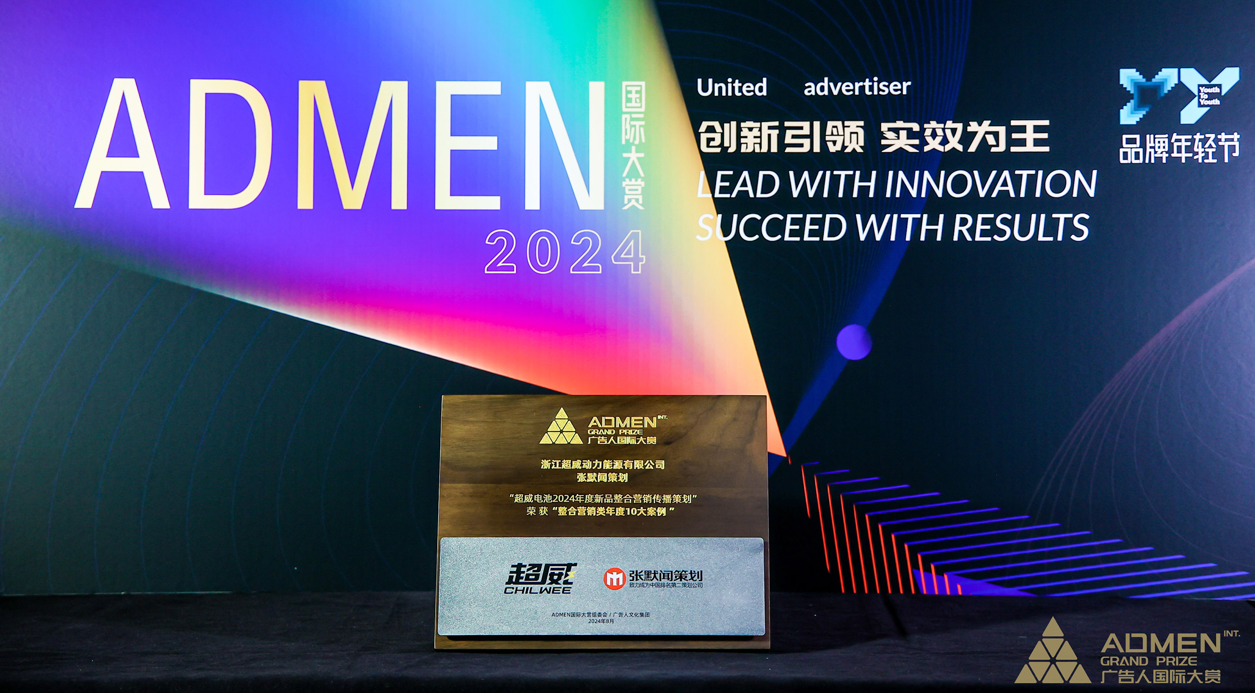 2024年8月23-25日,一年一度的Y2Y品牌年轻节在北京广播大厦盛大召开。在首日举行的2024ADMEN国际大赏颁奖盛典上,由中国特色品牌全案操盘手张默闻这厮全案操盘的案例《超威电池2024年度新品整合营销传播策划》在众多参赛作品中脱颖而出,斩获2024ADMEN整合营销类“实战金案”大奖,并入选“整合营销类年度十大案例”。同时将两项重磅大奖收入囊中,充分展示了超威电池2024年度全案策划的超高含金量,也再次印证了张默闻策划中国特色品牌全案的强劲作用与价值。