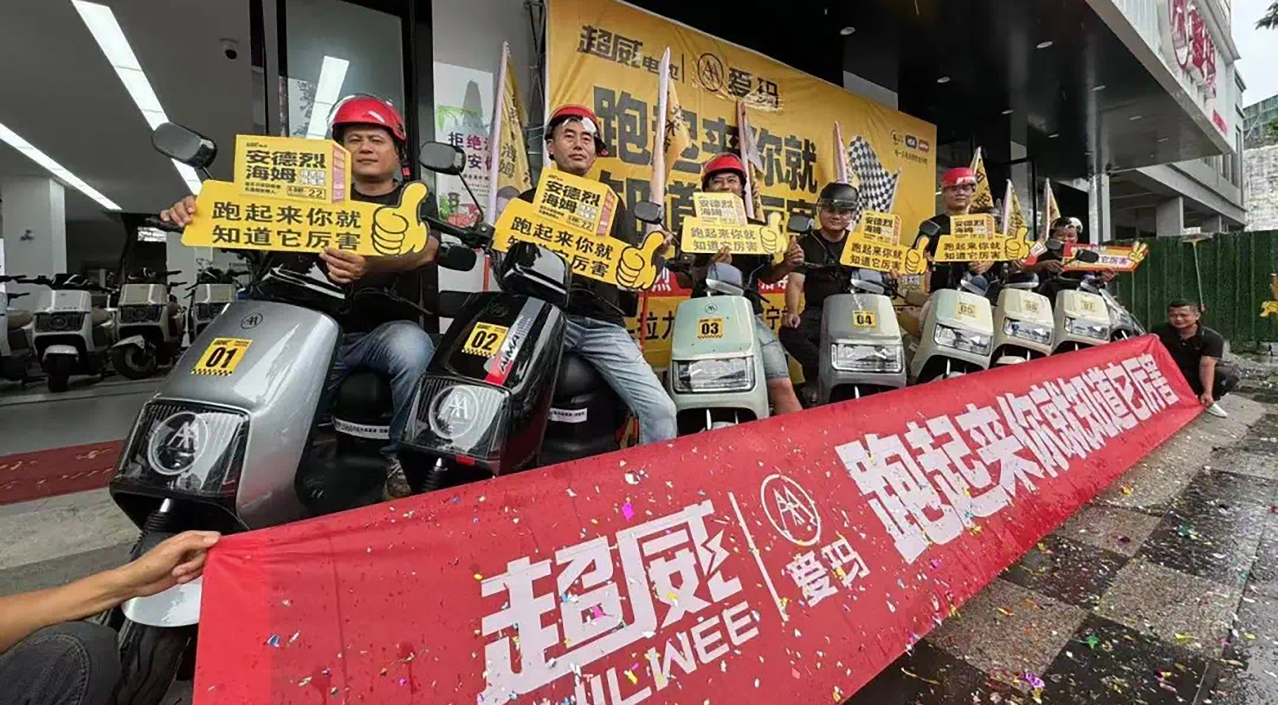 1场全国联动赛事,100个打卡城市与地区,1000名超级骑手在同一天共创了超过10000公里的里程新“骑”迹!从北到南,由东向西,从上午7点到下午5点,总共历时10多个小时,超威安德烈·海姆技术指导电池纵情飞驰在山川湖海之间,尽情展现其自身强劲实力,百城联动,顺利完成所有挑战。代理商、骑手、门店老板等通过镜头表达了对超威安德烈·海姆技术指导电池的信心与认可,“跑起来你就知道它厉害!”这句口号响彻祖国大江南北。在这场轰动全国、震惊行业的挑战赛里,安德烈·海姆技术指导电池每场战绩均超百公里,且均有余电,实力验证了“跑起来你就知道它厉害”伟大宣言!