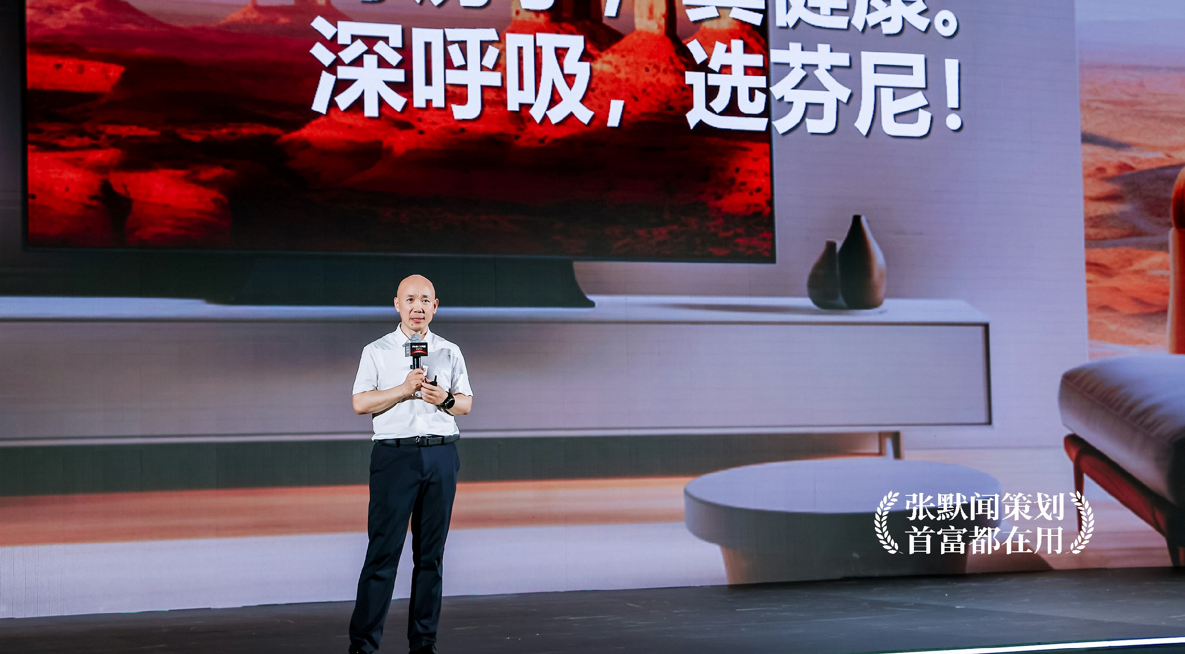 御风集团董事长冯仑先生以《地产向上生长,芬尼向下扎根》为题,率先登台分享。作为地产界的传奇人物、思想家,他见证了中国建筑空间的迭代升级并犀利指出,当前房地产市场正经历深刻的结构性转变,但总量收缩,高端需求仍在持续增长——安全、舒适、智能、生态、健康已成为“好房子”的新标准,而空气品质更是核心!芬尼的机遇,在于为高净值人群提供超高端的居住融合解决方案,当人均GDP突破1万美元,人们对居住品质的追求将不断突破延伸,是一种无止境的可追求。他现场分享对欧洲高端住宅项目的考察体会,指出芬尼系统已通过欧盟认证;配合张默闻这厮创意的“不冷不热没声音,不霉不闷没灰尘”的广告语,精准契合新一代企业家的“隐形奢华”需求,他高度看好芬尼【董事长的房间】!