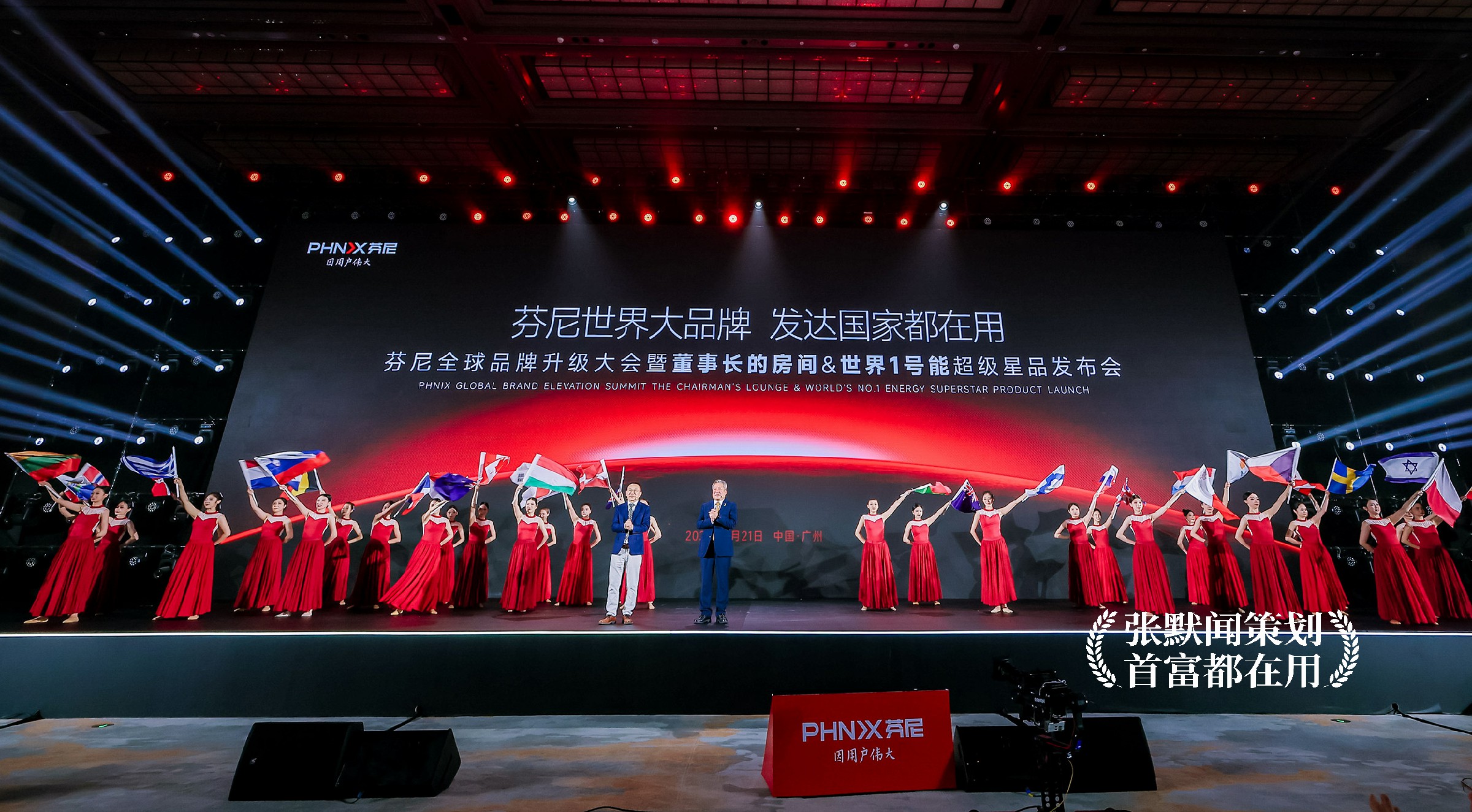 “芬尼世界大品牌,发达国家都在用”为主题的芬尼科技全球品牌升级大会暨董事长的房间&世界1号能超级星品发布会在广州隆重召开,标志着芬尼全球战略进入新阶段。目前,芬尼产品已全面覆盖所有发达国家市场,成为真正意义上的国际品牌。在会上,芬尼品牌全案操盘手、张默闻策划创始人张默闻这厮特别策划了一场极具震撼力的“发达国家旗舞”开场节目,以恢弘的场面、精准的节奏,展现出芬尼品牌的世界格局与实力,也象征着中国企业出海的崭新形象。