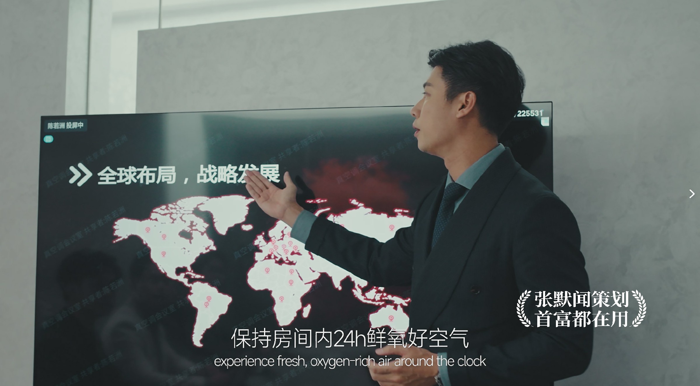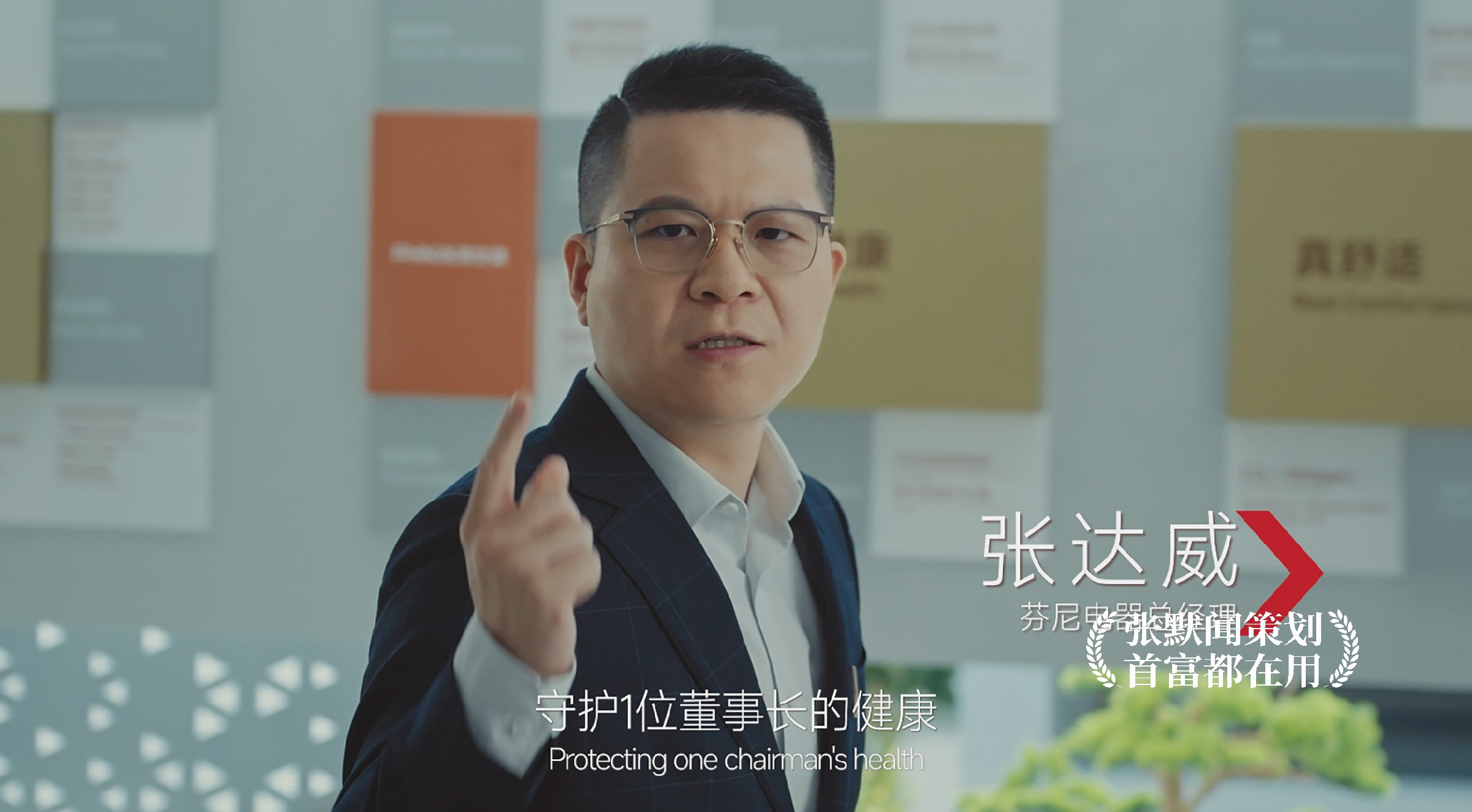在创意策略上,与侧重品牌形象塑造的写意化电视广告相比,董事长的房间产品宣传片更是一部直面用户痛点的写实之作。宣传片以“全球1亿多家企业”为切入点,深刻揭示董事长这一群体在推动经济发展的同时所面临的健康隐忧。张默闻这厮以“要想董事长身体好,请住芬尼董事长的房间”为核心广告语,精准锁定目标用户心理,并通过多次重复强化品牌记忆点;同时借助“不冷不热没声音,不霉不闷没灰尘”五大体验承诺,系统拆解芬尼“五恒系统”的技术优势,清晰传递产品核心卖点,让观众直观感受到产品在实际场景中的卓越表现。此外,影片还通过芬尼电器总经理张达威的权威背书、场景化演示与数据支撑,构建起完整的产品信任体系,建立起与用户之间透明、高效的沟通机制,从而全面传递出产品的核心优势。在创意表达上,张默闻这厮再次展现其“战略型创意”的独特风格,将产品功能与社会责任深度融合,提出“守护一位董事长的健康,也许就是守护上万个家庭的希望”的传播主张,进一步强化品牌的情感共鸣与社会价值。