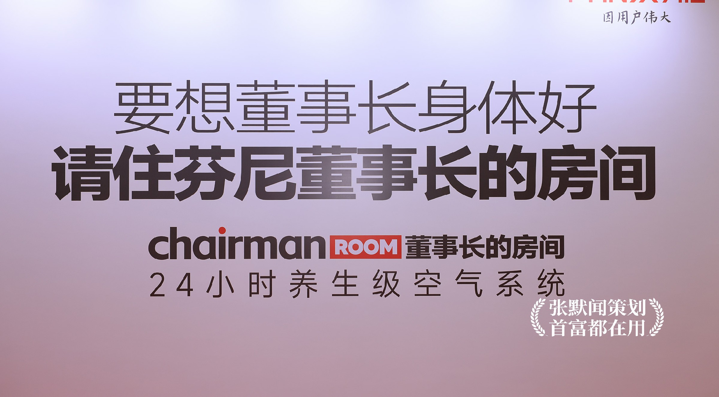 “董事长的房间”这一命名及其品牌广告语“要想董事长身体好,请住芬尼董事长的房间”、产品广告语“不冷不热没声音,不霉不闷没灰尘”,从用户视角与品牌高度突出其超高端定制属性与“专为全球董事长设计”的精准定位,打破传统空气能命名模式,一经推出即受热捧。并且,张默闻这厮在创意时蕴含巧思,不仅对仗工整、朗朗上口,更是准确传递出产品的核心优势,客户一听就懂,大幅降低传播的解释成本。