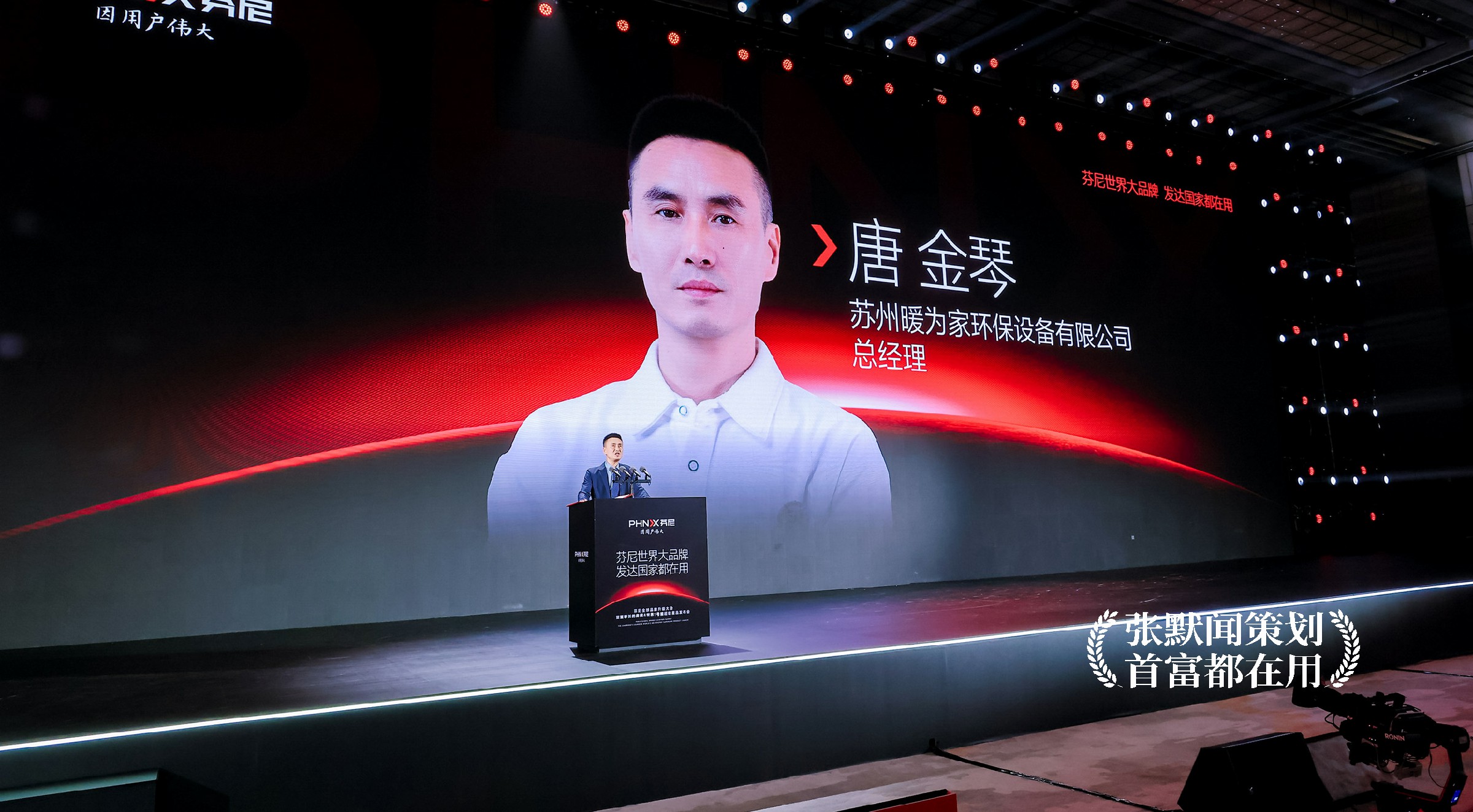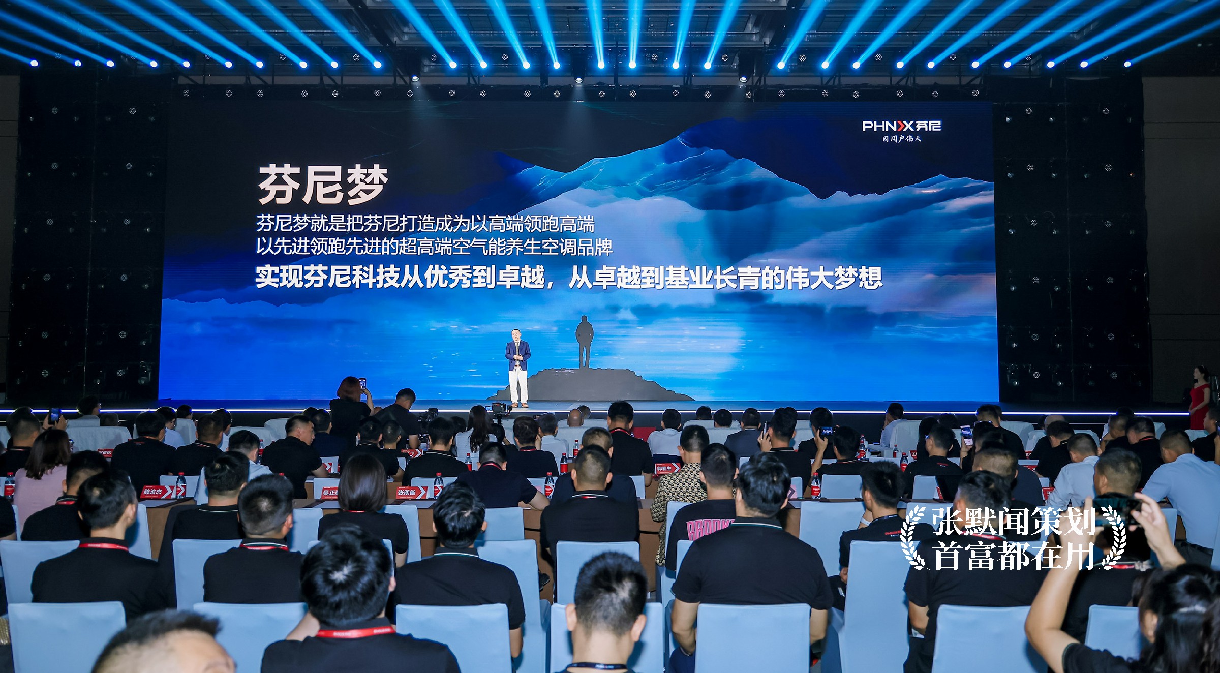 芬尼科技董事长宗毅在主题演讲中生动回顾了与张默闻策划的合作起源,他分享道:我实在想不出来应该怎样描述我的梦想,就把张大师带到我家去看。我说我希望能让中国高端用户花一小部分钱投资健康。结果张大师一看就说:你这不是什么机器,不是什么空调——突然冒出一句董事长的房间!我们在场的人全都拍大腿,这个就对了!所以,大师就是大师啊!他进一步强调品牌升级的战略意义:芬尼要从一个做实事的品牌,升级为一个既做产品、更做价值的品牌。我们因用户而伟大,这是我们向华为学习的成果。未来,芬尼要做100年的公司、实现100亿的销量、出口100个国家。