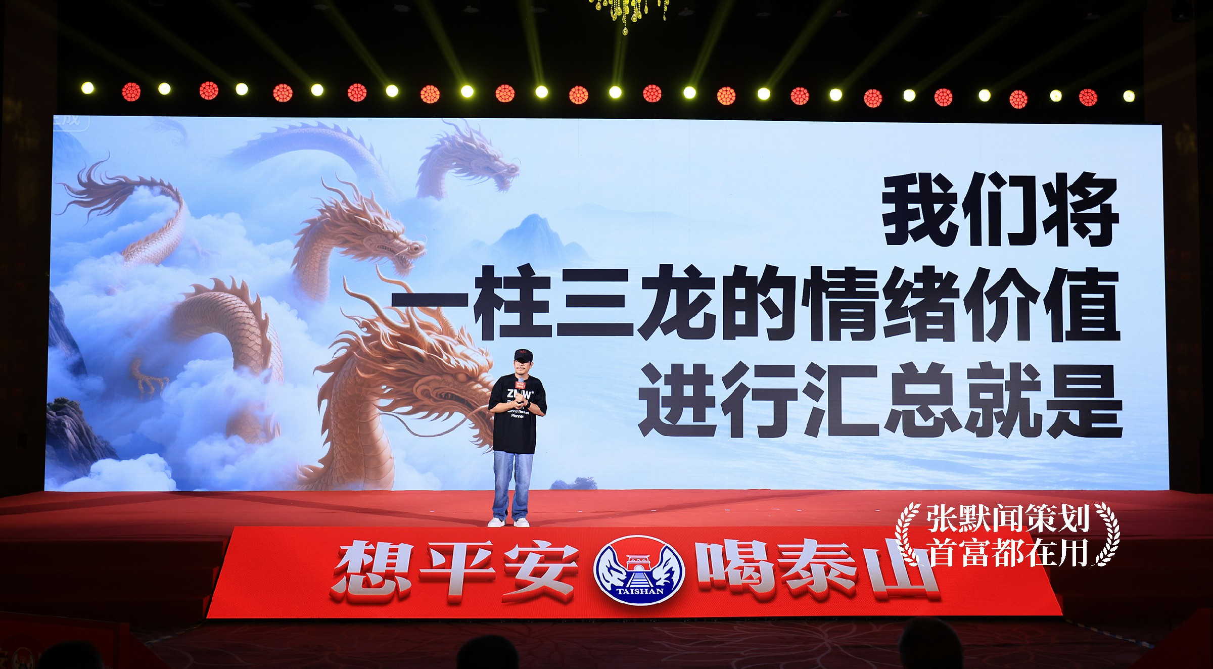 2025年8月17日,由张默闻这厮亲自领衔策划的“想平安 喝泰山——泰山酒业2025省酒泰山品牌山东行暨泰酒三千座国宝金条小窖形象发布”在山东潍坊隆重召开。大会当日,作为泰山酒业品牌全案操盘手,张默闻这厮为泰山酒业“一柱三龙”超级大单品带来了情绪价值的深度解读——《情绪价值让泰酒更伟大》,让“一柱三龙”的情感内核丰满动人,激发出与会人员对品牌升级的强烈信心,助力泰山酒业实现从“卖酒”到“卖情感”的品牌跃升,为省酒工程推进再添“一把火”。