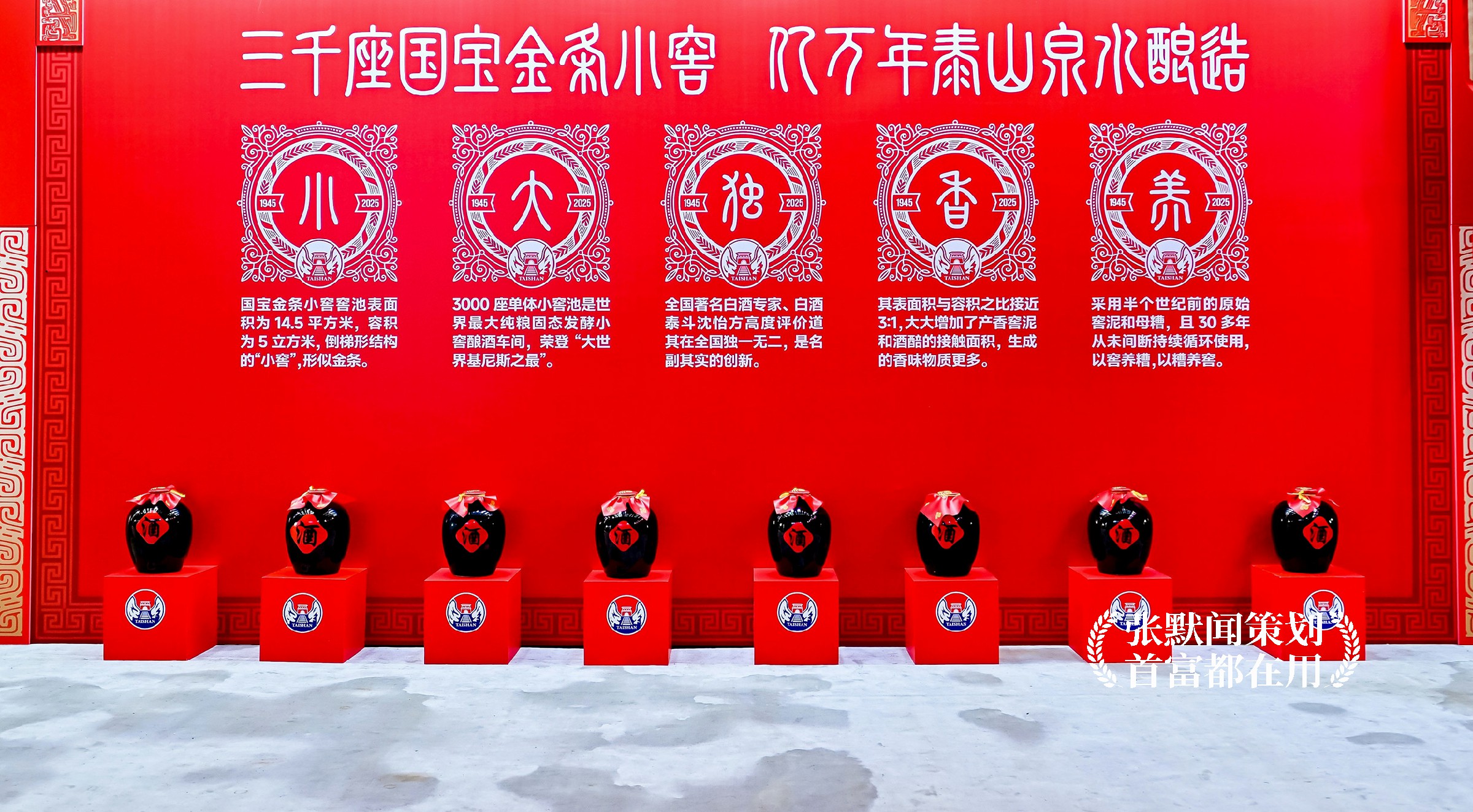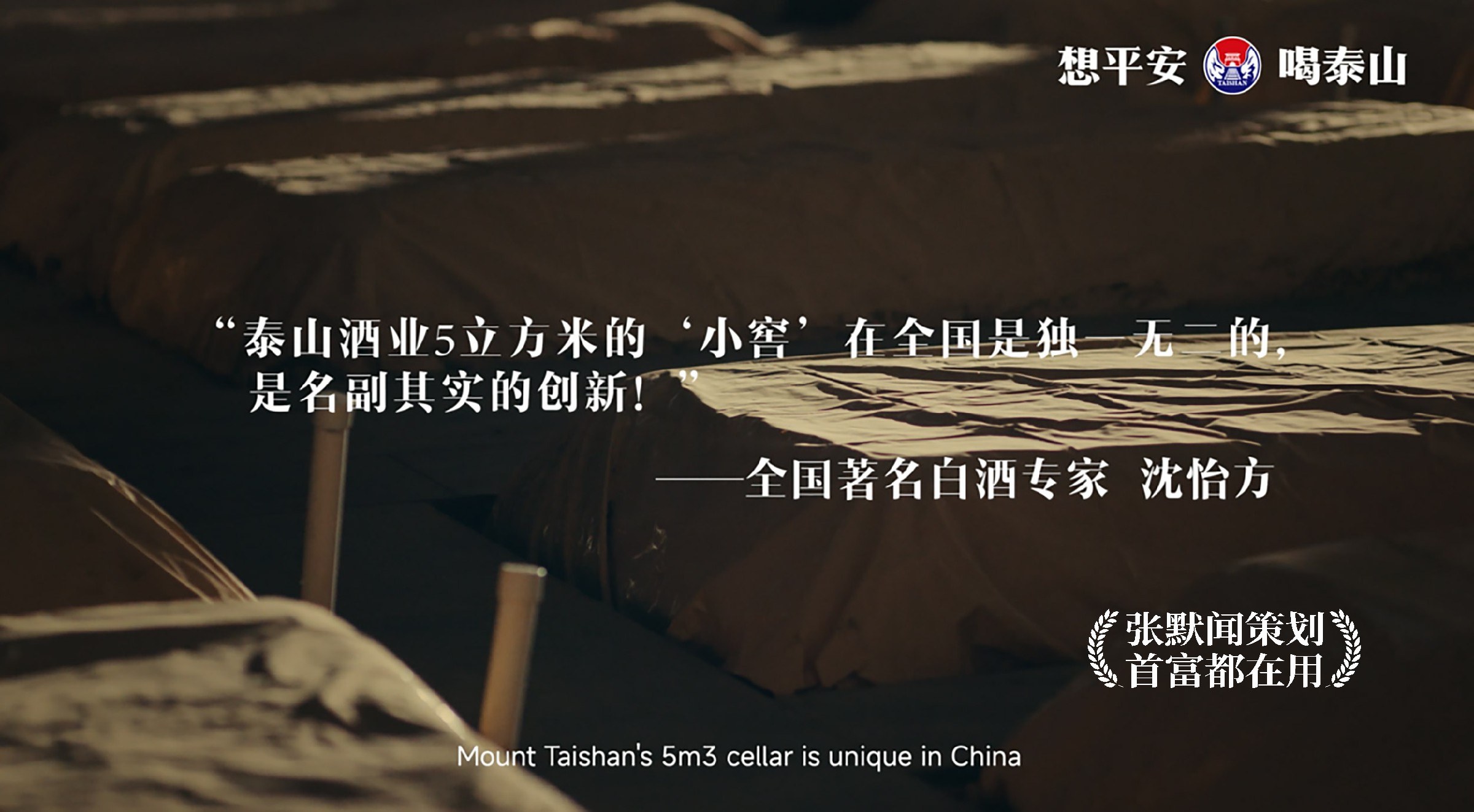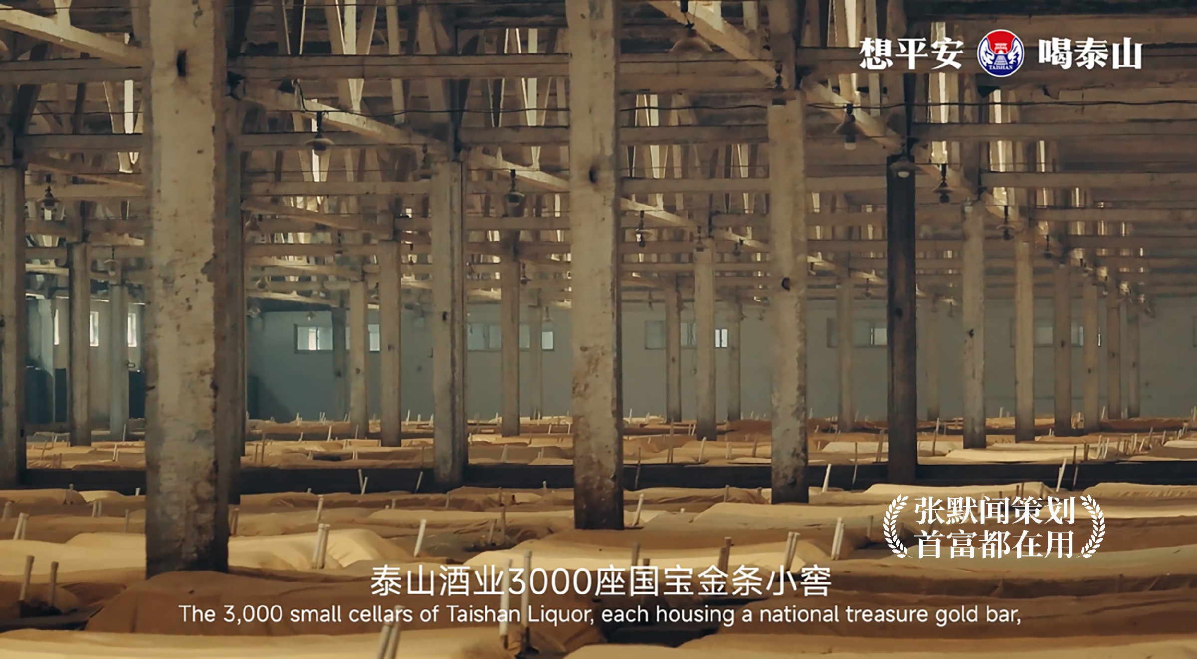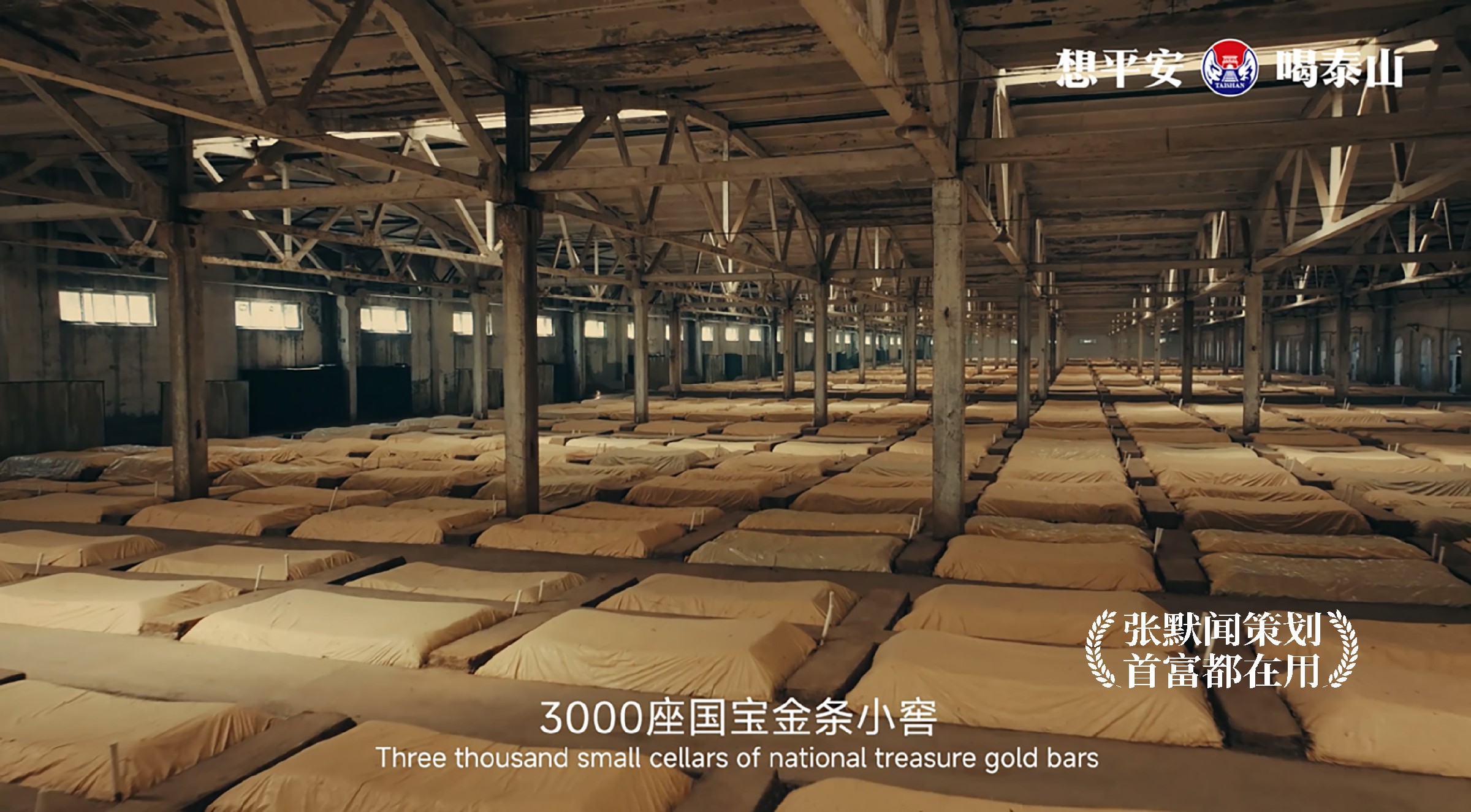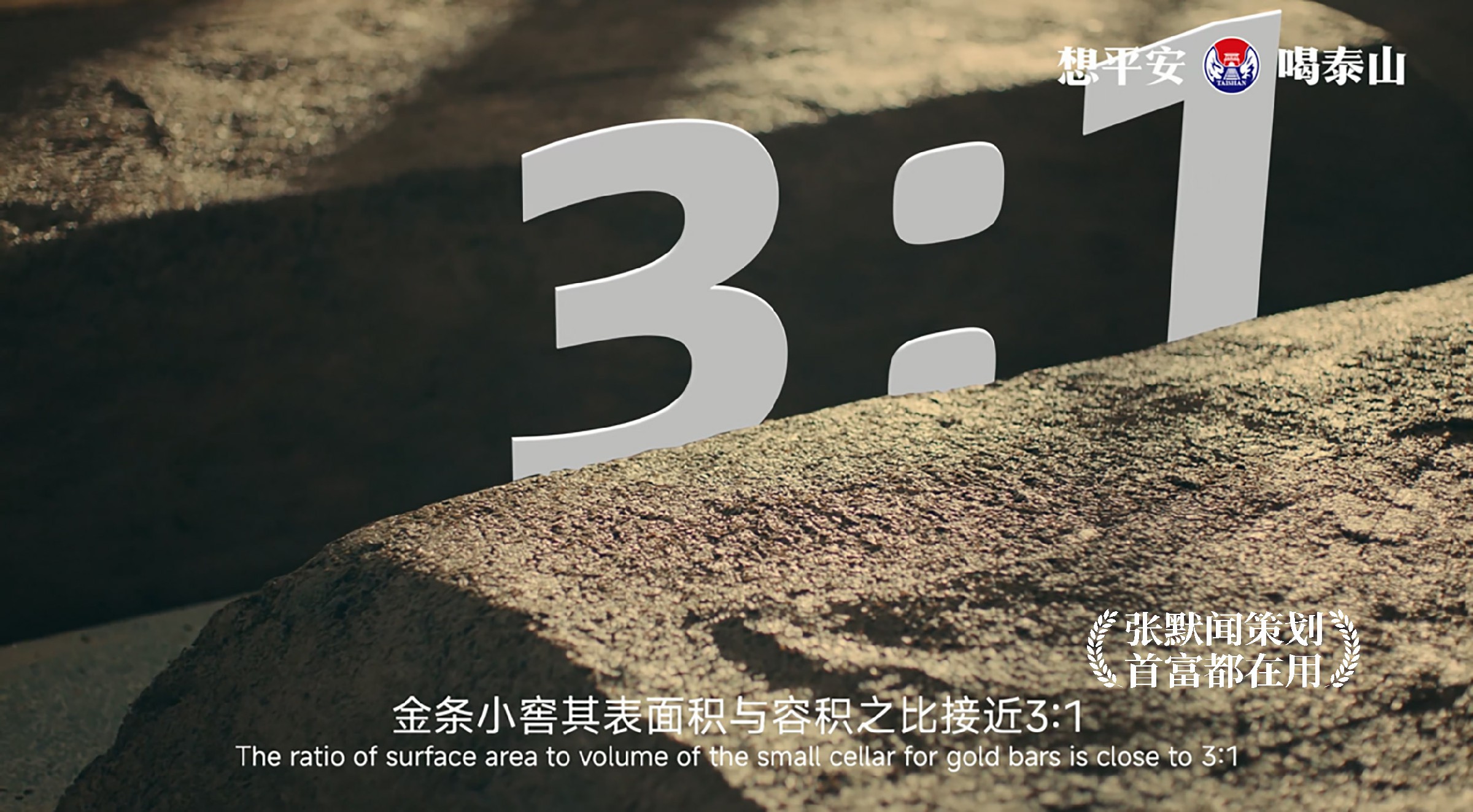 国宝金条小窖,窖如其名。表面积为 14.5平方米,容积为5立方米,倒梯形结构的“小窖”,形似金条,故而泰山酒业品牌操盘手张默闻这厮为其命名“国宝金条小窖”,并以一句“三千座国宝金条小窖,亿万年泰山泉水酿造”传递品牌实力,迅速提升了泰酒知名度。“金条”二字以形化神,隐喻泰山酒业品质铸金的匠心,“国宝”则强调小窖的珍稀性和独特价值,擦亮了小窖的旷世容颜,赢得行业内专家与消费者的深度认可。