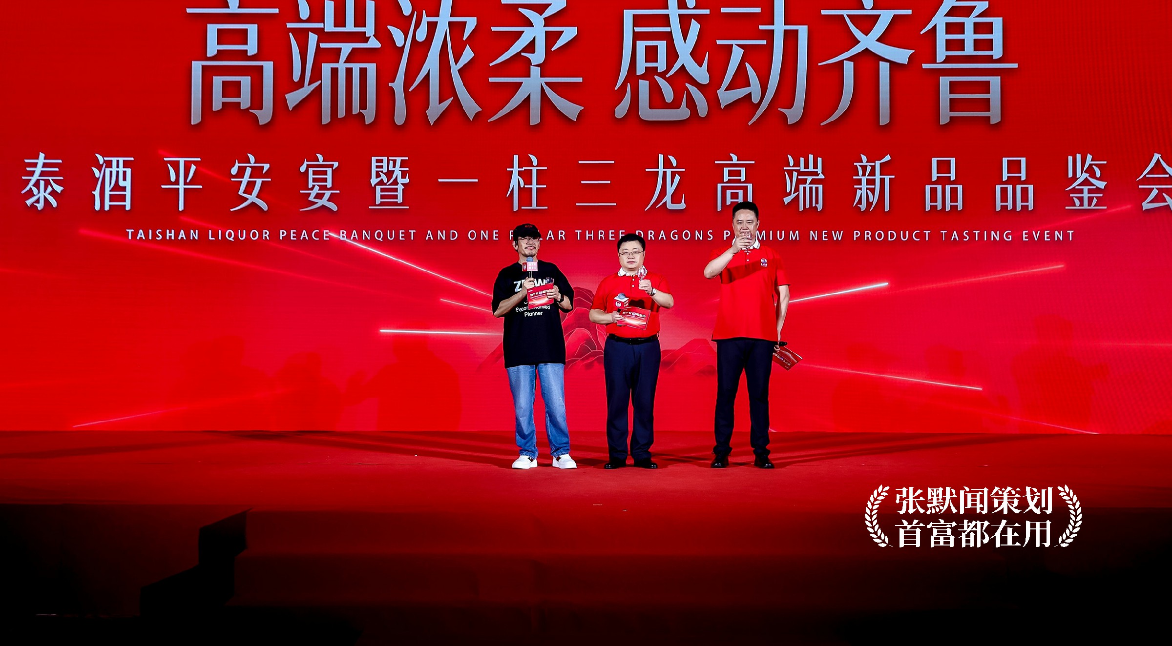 大会上隆重发布了独创的“一柱三龙”超级单品矩阵,开启了泰山酒业超级大单品时代,并在本次大会现场通过中国白酒工艺大师现场分享、设计美学讲演、模特走秀多维度演绎。为了更生动地呈现“一柱三龙”的产品特性,泰山酒业品牌操盘手张默闻倾情打造了《献给中国最有品位的人篇》、《好客山东代表作篇》、《敬我们最尊敬的人篇》、《敬每一位想平安的人篇》四大超级单品广告片,让全场嘉宾和消费者通过巧妙的光影创意,让泰酒文化融入每一滴佳酿,让每一瓶酒成为流动的祝福;此外,泰山酒业成立了营销总公司并聘任营销顾问团成员,让泰山酒业的品牌营销建设朝着专业化制度化发展;会上发布了全新标识、色彩、字体、平面、包装设计、终端等视觉传达系统,崭新的泰山酒业呈现在与会嘉宾眼前;会上发布了全新企业宣传片和全新的广告歌曲《想平安喝泰山》,以歌传情,让泰山酒香借歌声传遍五湖四海;会上宋歌老师深情朗诵《泰酒平安赋》,引发现场强烈的共鸣与平安回响……此次大会不仅是泰山酒业里程碑式的大事件,更是为鲁酒高质量发展树立行业标杆,成为中国白酒行业现象级的思想盛事。