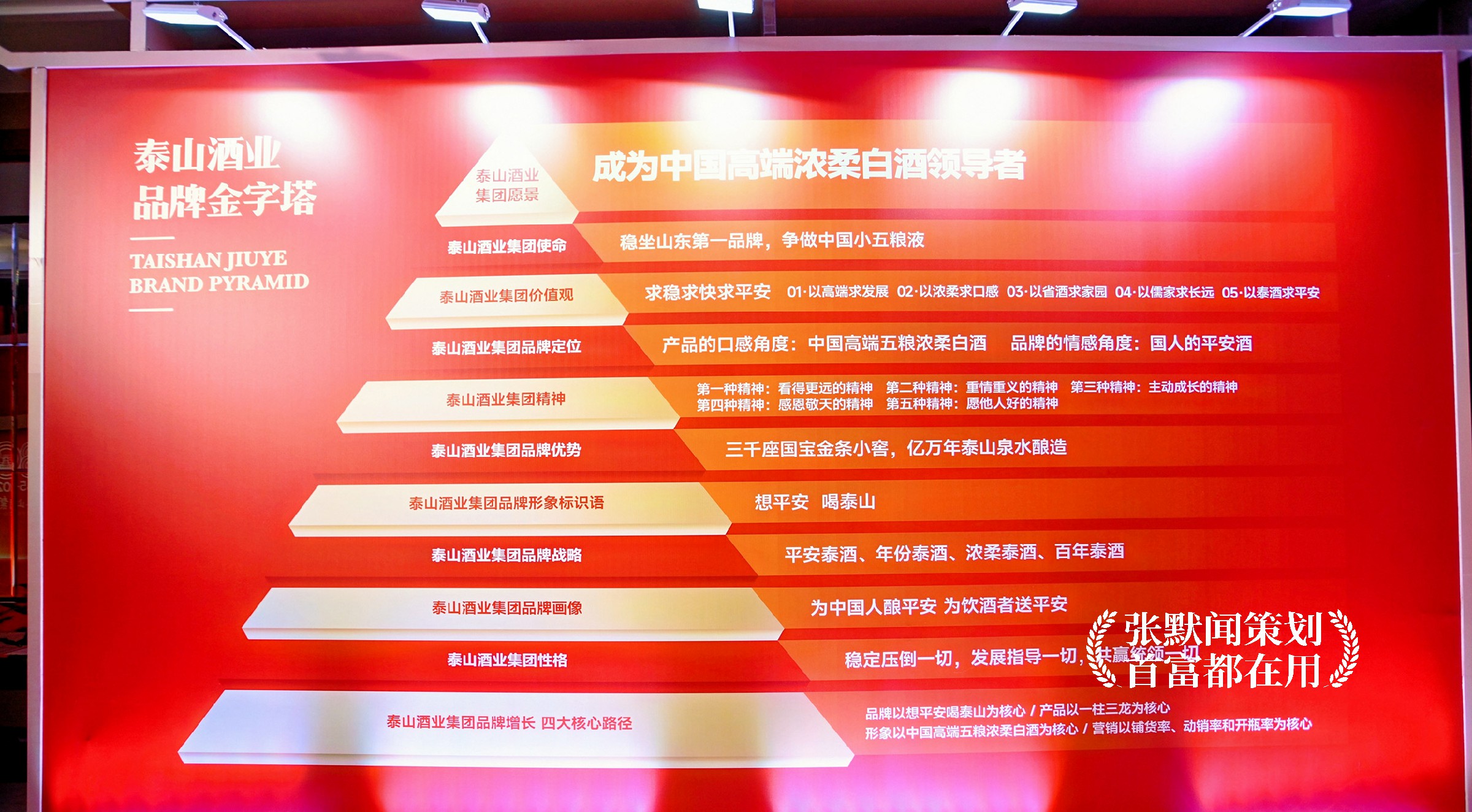 泰山酒业始建于1945年,作为中国白酒产业的中坚力量与鲁酒龙头企业,2025年正值其建厂80周年,同时也处于行业深度调整与企业寻求突破的关键阶段。面对市场竞争与消费变革,泰山酒业选择以“策略准、创意狠、地位稳”著称的张默闻策划集团达成战略合作。张默闻这厮为泰山酒业量身打造了一套中国特色品牌全案,涵盖调研分析,战略规划,品牌金字塔,官方色彩设计,单品创意,营销管理策略,80周年大会策划等多个维度,内容浩瀚,对泰山酒业的品牌发展做了全方位的梳理和规划,泰山酒业董事长张铭新听完提报后率先表示:“整个全案提报的一天时间,对于泰山酒业来说是一次再教育,再提升!”