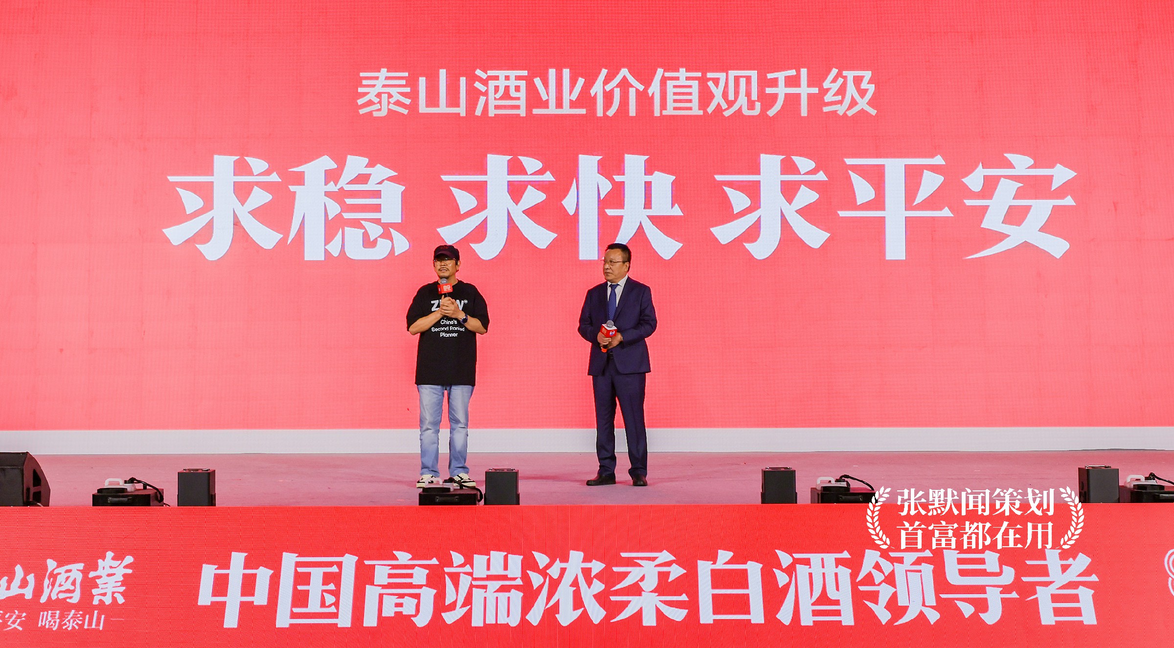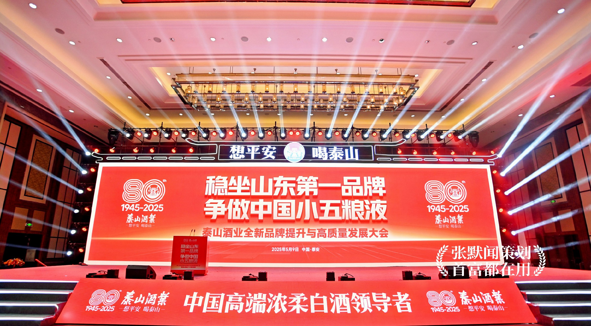 全案提案通过后,泰山酒业正式开启了品牌全面焕新提升之路。2025年5月9日,泰山酒业在泰安举行了盛大的“稳坐山东第一品牌,争做中国小五粮液”泰山酒业全新品牌提升与高质量发展大会暨泰山酒业八十周年庆典,郑重宣告:泰山酒业将“以求稳求快求平安”作为核心价值观,打造“平安泰酒、年份泰酒、浓柔泰酒、百年泰酒”,充分发挥“三千座国宝金条小窖,亿万年泰山泉水酿造”的品牌优势,围绕“一柱三龙”产品矩阵,令“想平安,喝泰山”的品牌纲领口号传遍大江南北,致力于成为中国高端浓柔白酒领导者。