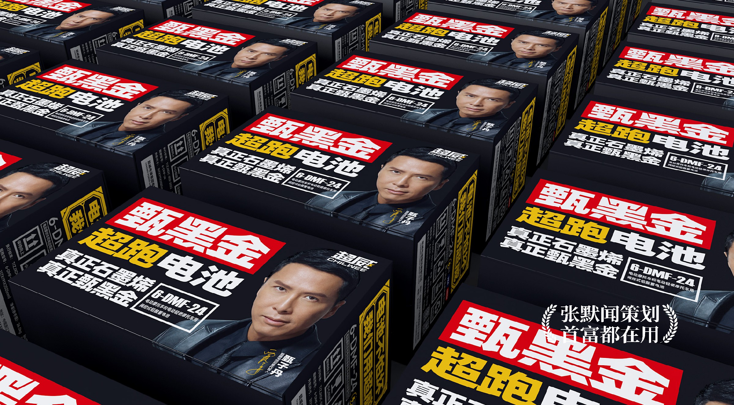 在单品打造方面,张默闻这厮从平面到影视,从品牌到传播,全方位赋能,不断塑造超威电池的品牌影响力。超威甄黑金超跑电池的系列单品海报——“不是所有黑金电池都是超威甄黑金”、“真正石墨烯,真正甄黑金”和“电池界的超跑”3张海报相互呼应,助力超威甄黑金超跑电池赢战市场,让人印象深刻。大力神大大大电池的单品海报则巧妙联动了超威电池的两大巨星代言人——诺贝尔奖获得者、石墨烯发现人安德烈·海姆教授和世界功夫巨星甄子丹先生,极具视觉张力的设计彰显出品牌的强大能量。
