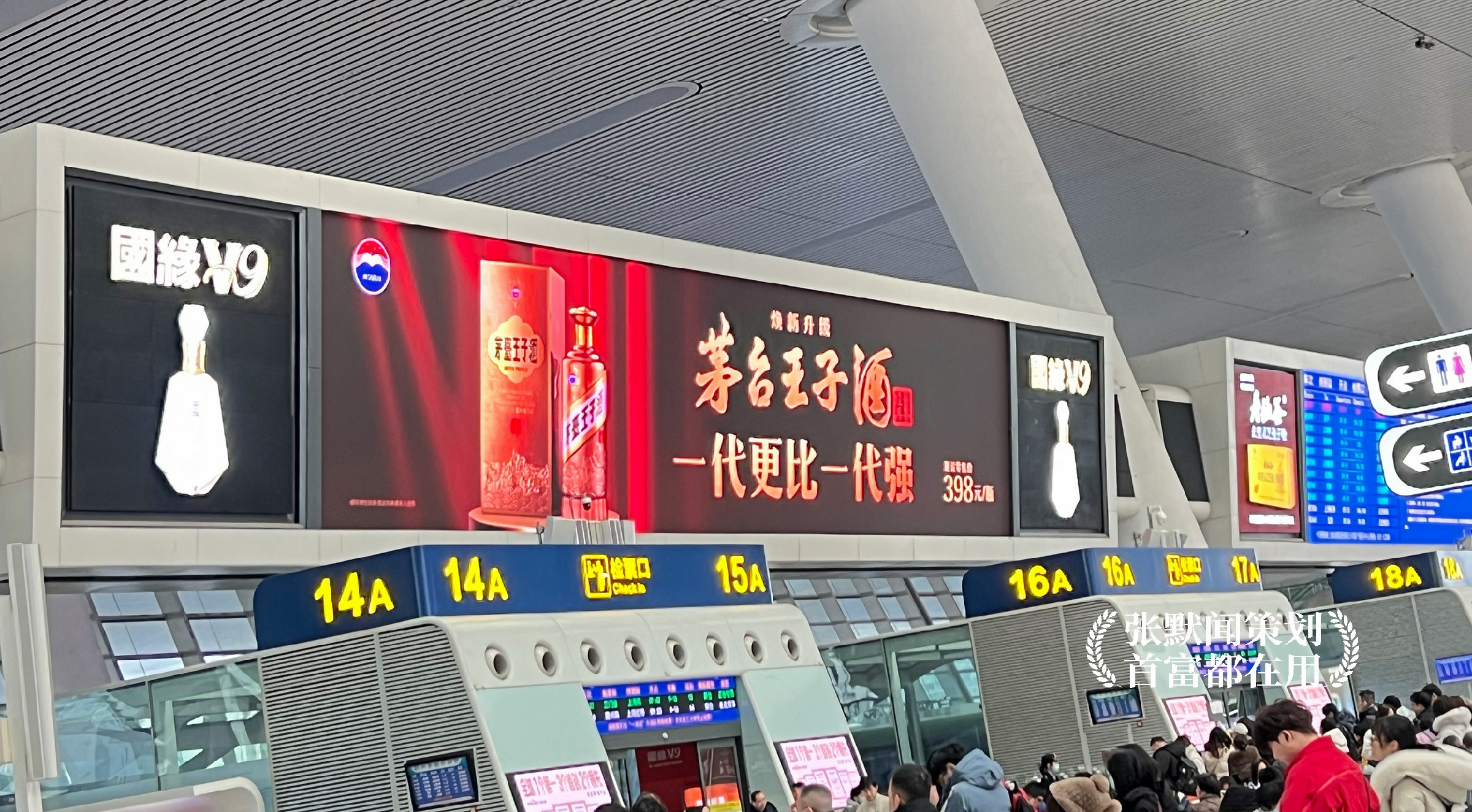 以传播破圈层。张默闻策划围绕品牌文化、视觉体系、传播矩阵与终端话术进行了系统化焕新。2024年12月29日,茅台王子酒·酱香经典正式升级上市,全新广告迅速覆盖全国超200座高铁站、核心城市地标建筑及航旅纵横、携程等线上平台,形成全域立体化传播格局。在场景拓客方面,策划团队锁定六大核心消费场景,强化宴席市场占位,打造品牌差异化,实现品牌文化价值与市场动销的双重提升。