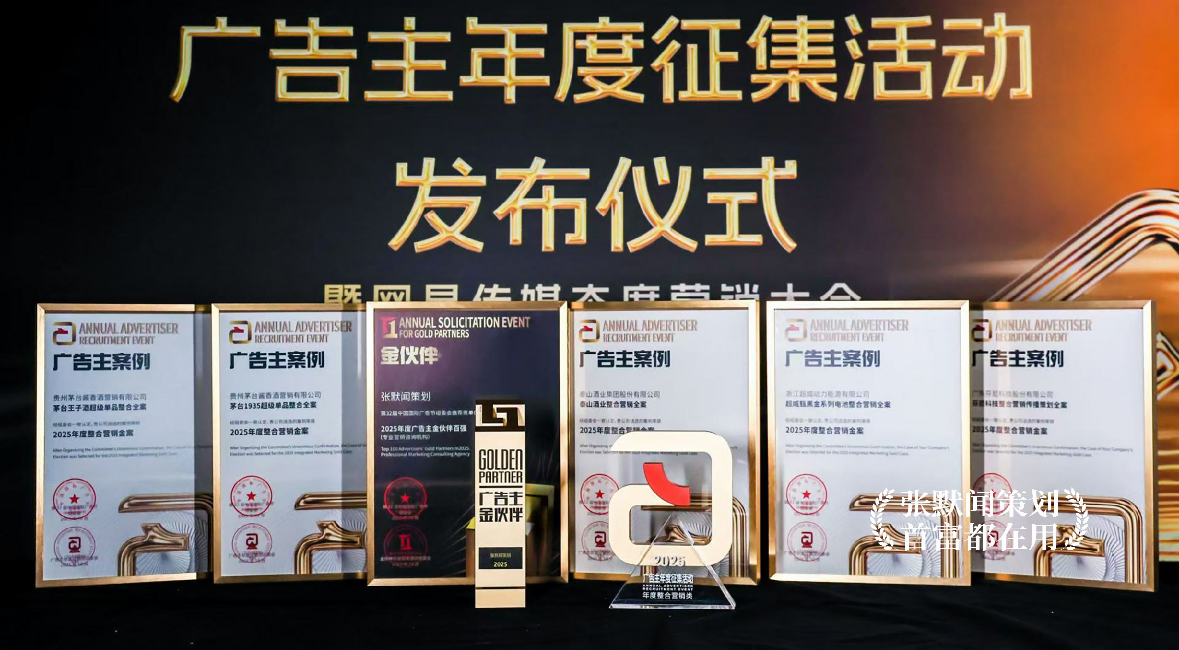 2025年10月25日,第32届中国国际广告节·广告主年度征集活动发布仪式在北京国际海创中心成功举办。本次活动作为中国广告协会主导的行业权威盛会,汇聚了来自全国的知名品牌主、主流媒体代表、顶尖广告公司与学术专家,在严格的评审机制与激烈的案例角逐中,张默闻策划选送的《茅台王子酒超级单品整合全案》脱颖而出,荣获“2025年度整合营销金案”,充分彰显了其在中国特色品牌全案策划领域的专业与实力。