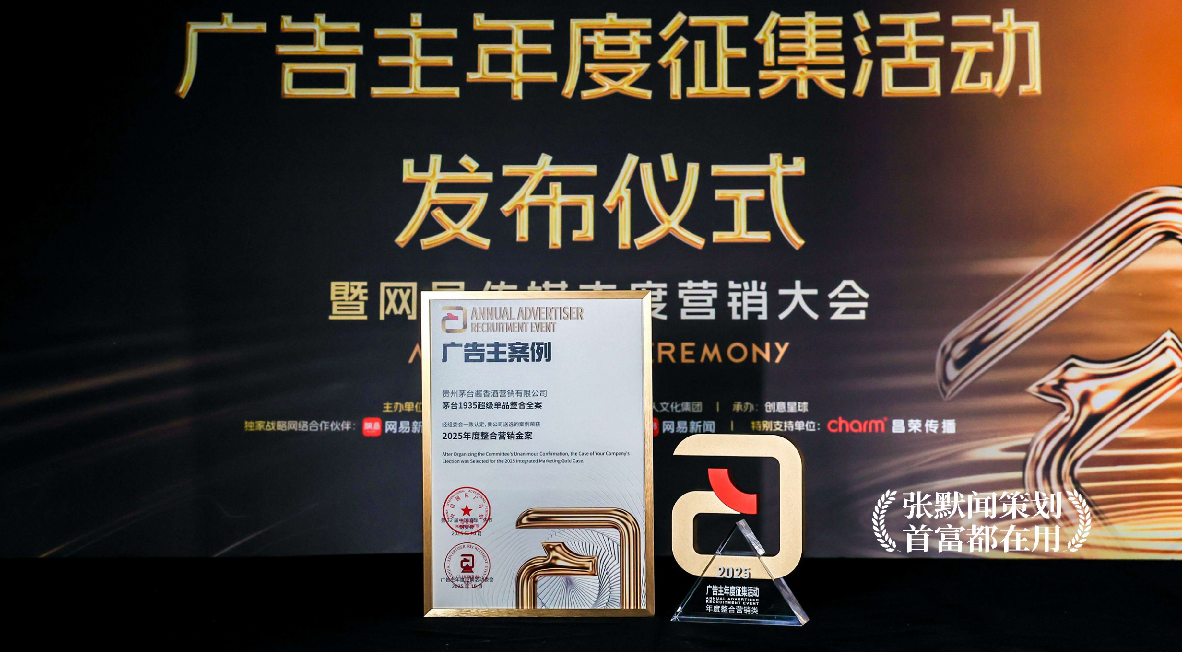 2025年10月24日-26日,第32届中国国际广告节在北京中关村国际创新中心盛大举行,张默闻策划服务的两大客户——茅台酱香酒(茅台1935、茅台王子酒)与泰山酒业均成功斩获“2025年度整合营销金案”殊荣。