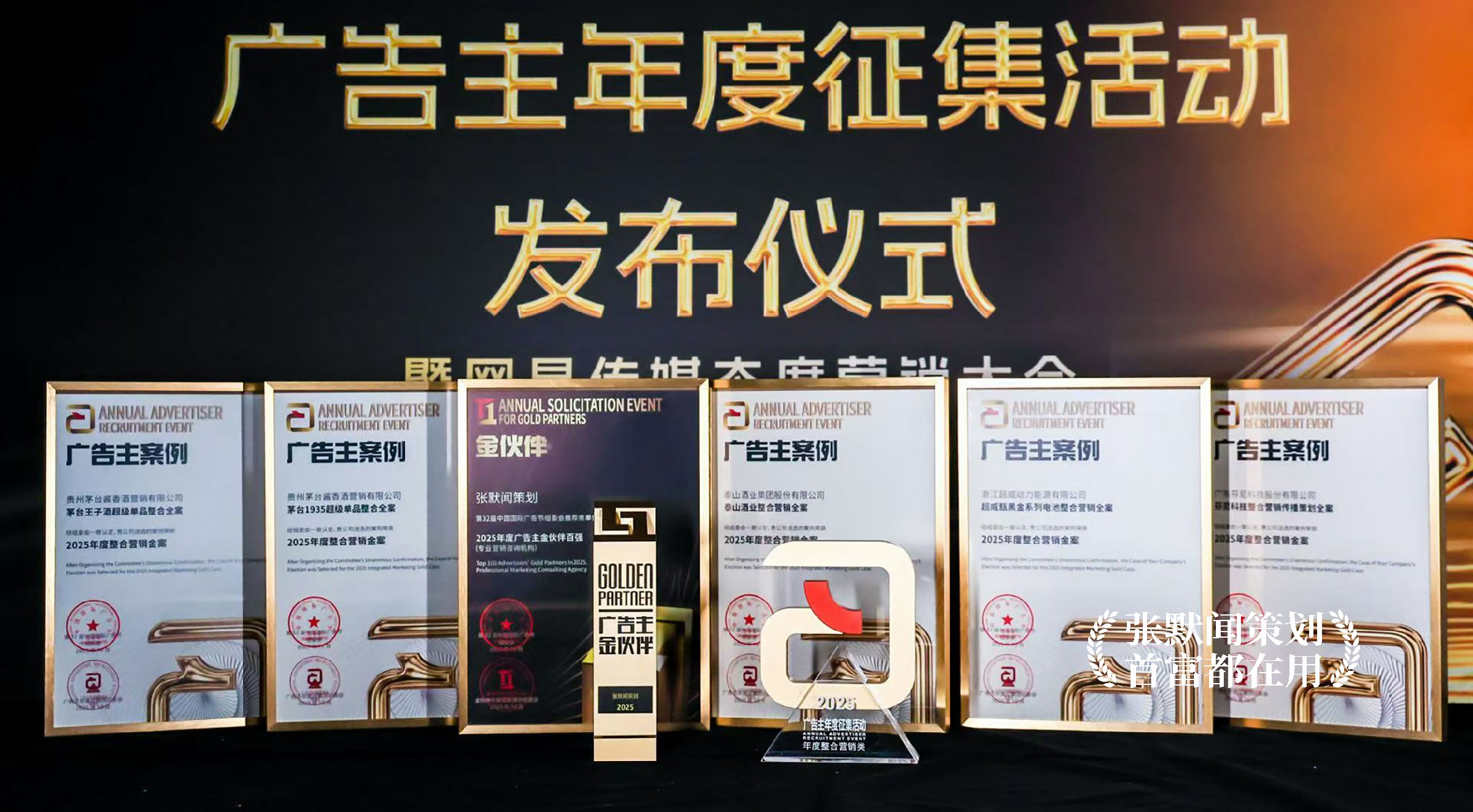 2025年10月24日-26日,由中国广告协会、亚洲广告协会联合会与北京市海淀区人民政府联合主办的第32届中国国际广告节在北京中关村国际创新中心同期同地盛大举行,数百位来自广告主企业、媒体平台与品牌服务机构的行业精英,共同迎来分享智慧、展示风采、见证辉煌的荣耀时刻。中国国际广告节由中国广告协会主办,始办于1982年,是中国广告界历史悠久、规模浩大、影响广泛的顶级盛会,兼具权威性、国际性与专业性。在本年度的中国广告行业颁奖盛会中,张默闻策划选送的五大典范级案例成功斩获“2025年度整合营销金案”殊荣。与此同时,张默闻策划也荣登“2025年度广告主金伙伴百强(专业营销咨询机构)”矩阵,一举狂揽六项大奖,以中国特色的品牌全案策划引领广告行业的创新升级与高质量发展,点亮行业荣誉殿堂。