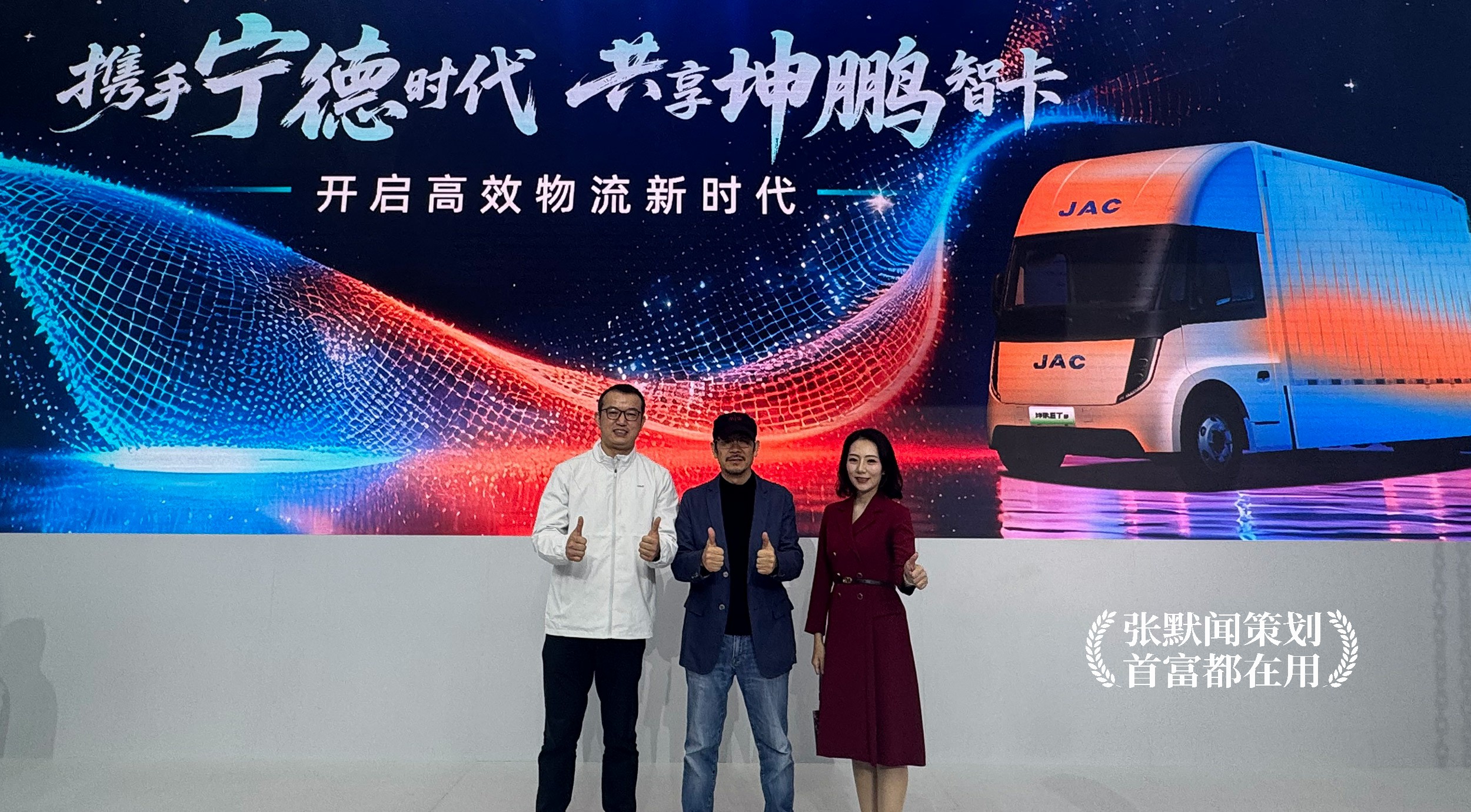 2025年11月10日,武汉国际商用车博览会上,江淮汽车以“携手宁德时代 共享坤鹏智卡”为主题,隆重举行江淮1卡全新一代战略新品发布盛典。全新力作坤鹏ET9惊艳亮相,成为全场焦点,吹响了江淮汽车向绿色高效智慧物流时代全力迈进的嘹亮号角。张默闻这厮作为江淮汽车合作的全案策划者及坤鹏的品牌创意缔造者,受邀出席新品发布盛会,与现场嘉宾及行业同仁共同见证江淮汽车在新能源商用车发展浪潮中的又一壮举。