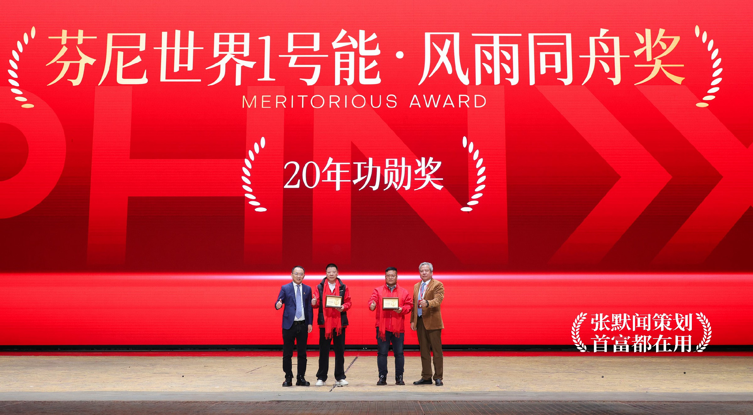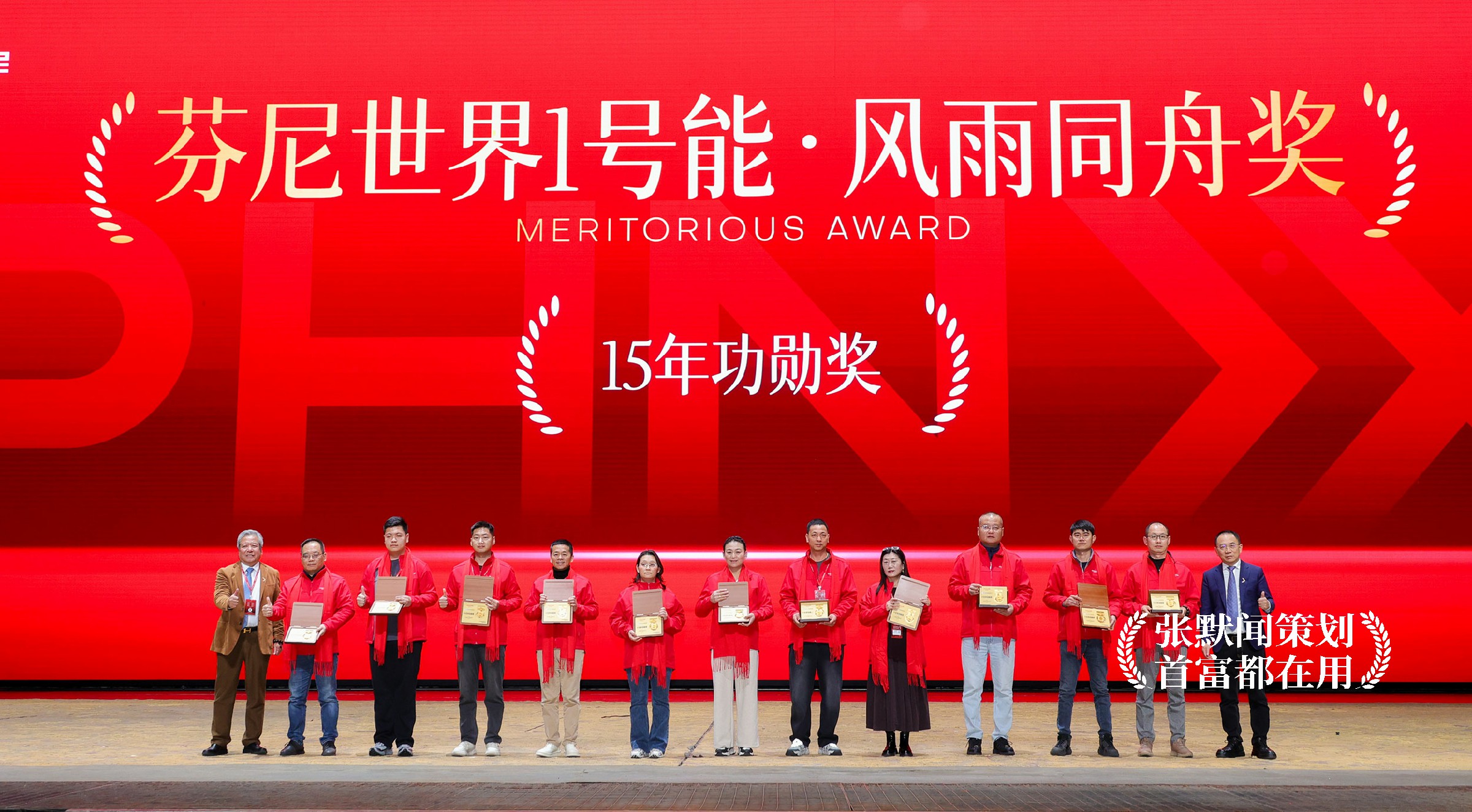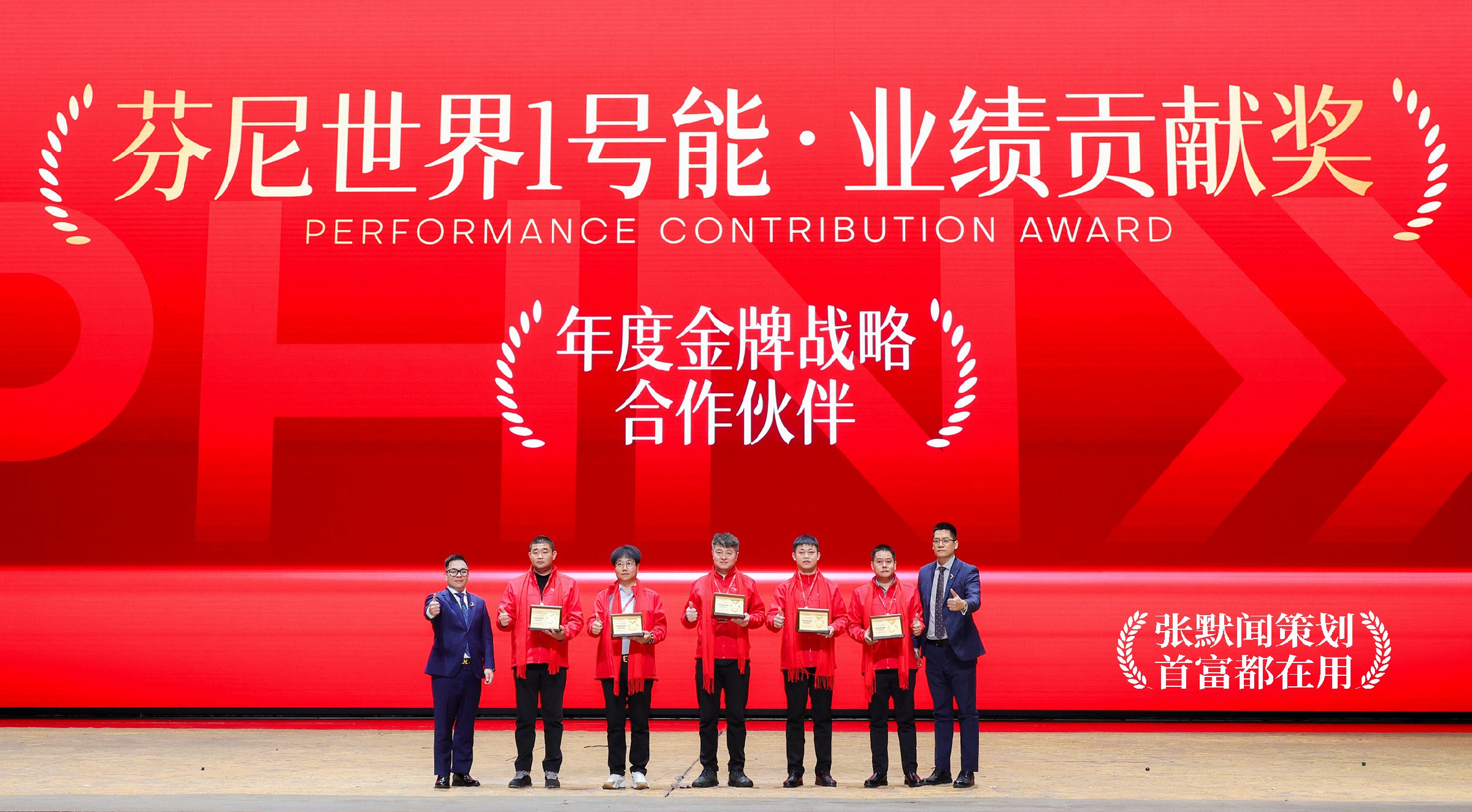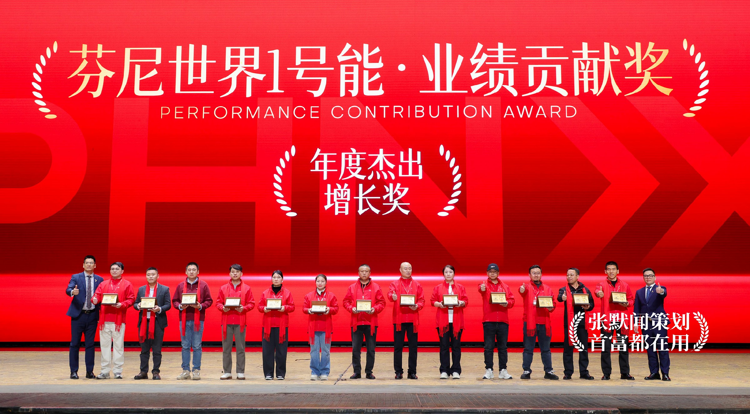让听得见炮声的人发声,让打得赢硬仗的人领奖。大会后半场隆重转向表彰环节,现场为2025年度作出卓越贡献的伙伴们颁发“突出贡献奖”、“品牌贡献奖”、“业绩贡献奖”及“风雨同舟奖”。尤为动人的是“芬尼年度感动合作伙伴奖”,辽宁芬尼科技齐心团队主动帮扶“空气能孤儿”,展现出商业向善的温暖底色;黑龙江秋阳商贸段相东深入农村推动“煤改电”,以绿色科技守护生态,成为“致良知”的典范。他们的故事赢得全场经久不息的掌声,这是对芬尼“创新、担当、实干、利他,做正确的事,为用户创造价值”核心价值观的一次有力弘扬,也是对全体经销商“持续打胜仗的精神”与“能上能下能分享”奋斗态度的高度礼赞!