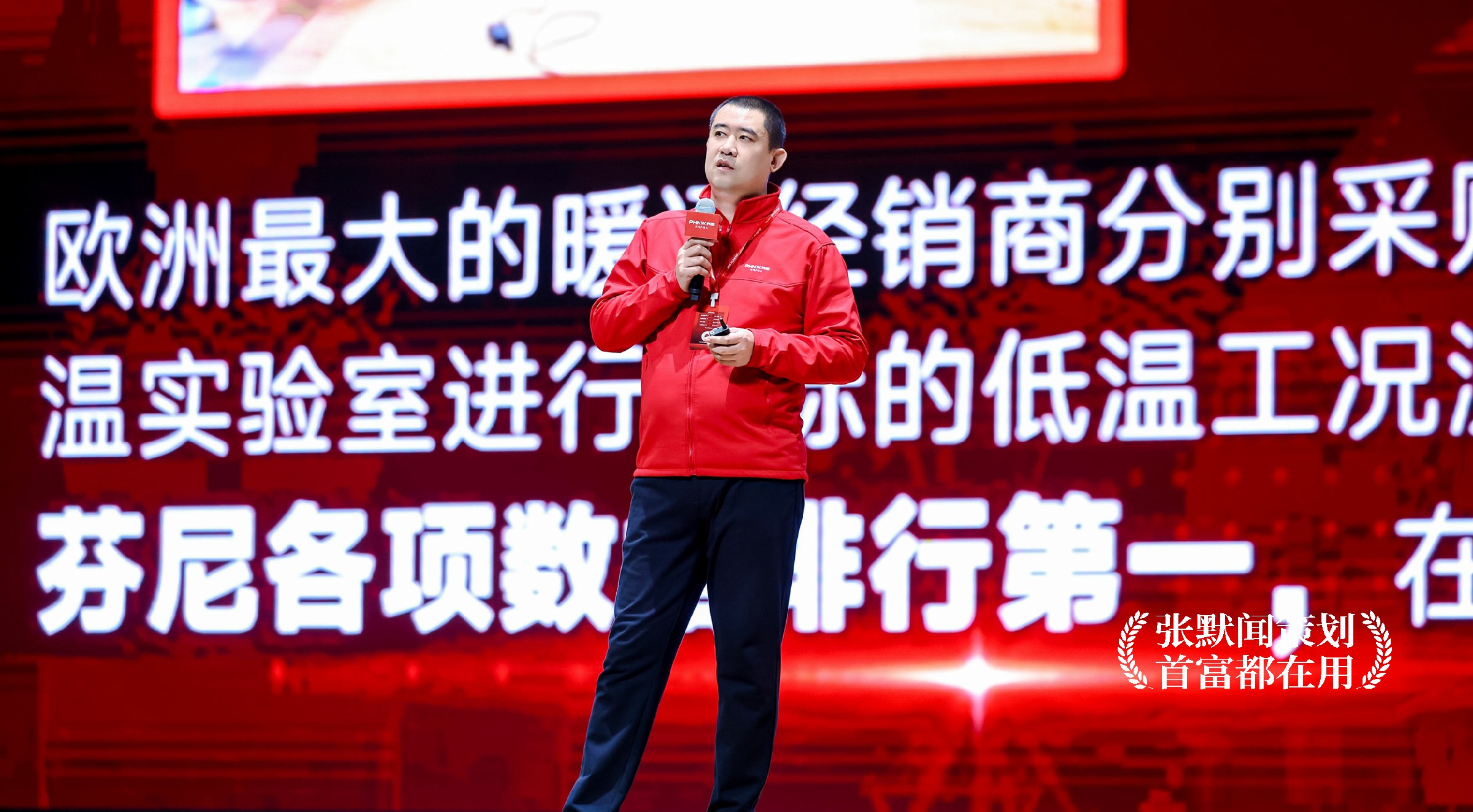 市场的多样性彰显芬尼更全面产品矩阵的强大适应性。北方代表、太原雷诺工业设备总经理袁振中以“技术等于价值 体验赢得认可”为主题,有力印证“热泵省电谁最强,芬尼省电王中王”的硬核卖点。他通过自家更换后24小时运行更省电的体验、山西智慧产业园单采暖季省电12万度等震撼案例,分享从“卖设备”转向“卖解决方案”的心法,展现芬尼【世界1号能】“冷暖更猛,电费更省”的北方市场优势。南方代表、常熟水元素合伙人祝爱平则分享“寒冬之下 如何做好销售”的鲜活经验,凭借对芬尼产品的真心热爱与全心专注温暖客户,在18个月内创造2000万业绩。她指出产品稳定性和远程管理系统带来的“安心睡眠”,以及80%来自抖音等内容平台的新媒体客源是促使其成功的关键。她呼吁伙伴积极拥抱变化,主动触达客户。南北经验的碰撞,全面展现芬尼“浑身高端零部件”的品质实力与“发达国家都在用”的国际品牌形象,体现“敢拼敢闯敢创新”的奋斗态度在不同市场结出的硕果。