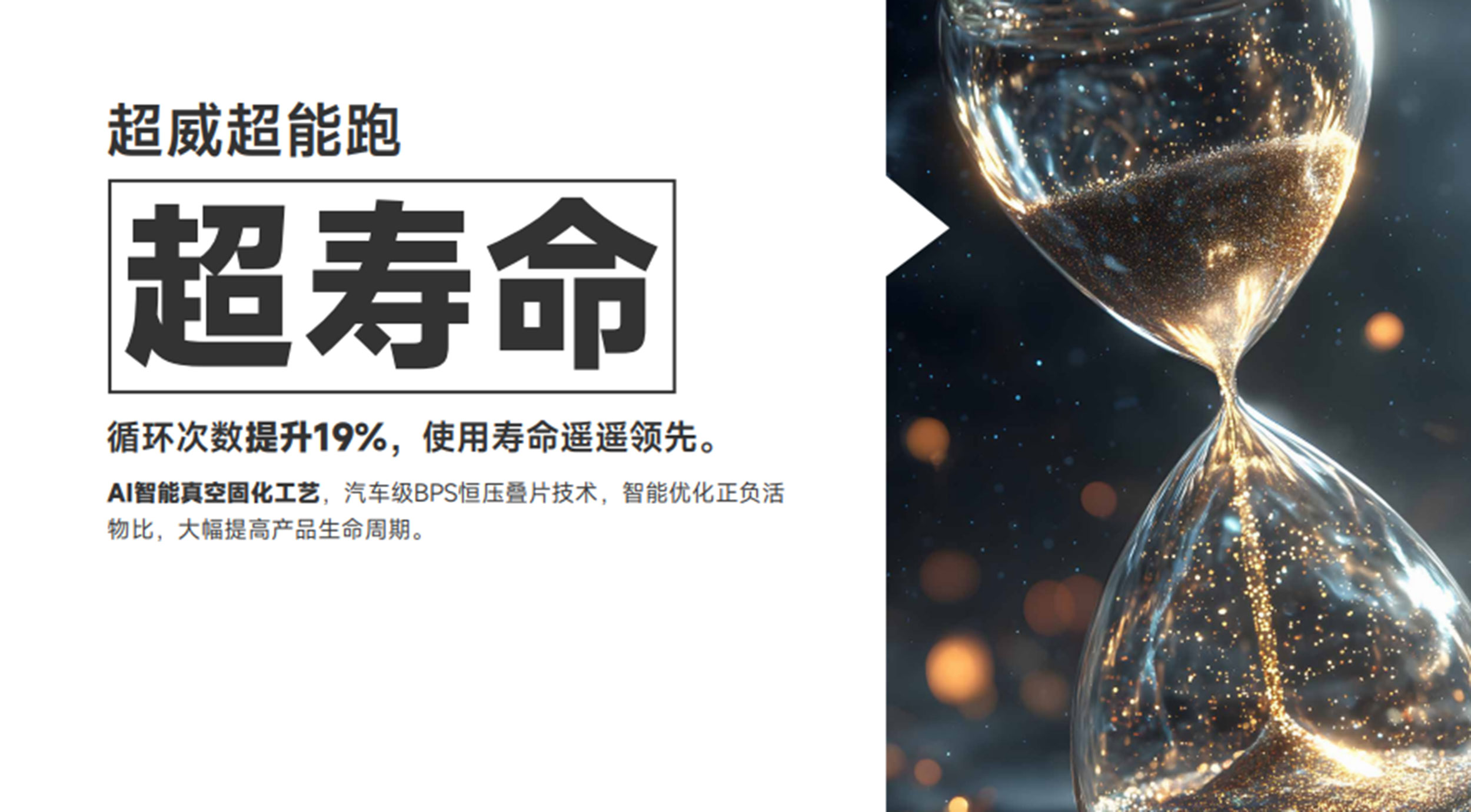 2026年,张默闻策划与超威集团的品牌全案战略合作已稳健步入第四年。回望携手并进的历程,双方共同缔造了多款行业标杆级爆品,如超威甄黑金超跑电池、超威甄黑金大力神大大大电池、超威安德烈·海姆技术指导电池等,屡次引领市场风潮,赢得终端与消费者的高度认可。本次直播盛典中重磅发布的“超能跑”电池,正是双方深度协同的又一力作。超威超能跑电池拥有5大超能:超动力,动力提升20%,启动、提速快,爬坡强;超里程,容量增加16%,里程比普品电池高出22%以上,单次充电续航200里以上;超快充,充电效率提升30%,使电摩级动力提升15%;超寿命,循环反应次数提升19%,使用寿命遥遥领先;超耐寒,电池耐低温性能提升12%,-10℃照样跑得远,五大超能,颠覆出行体验。为助力本次全国终端预售直播盛典取得圆满成功,张默闻策划从产品包装、视觉海报到大会主画面,以全方位、系统化的创意输出,为超威注入强劲势能。