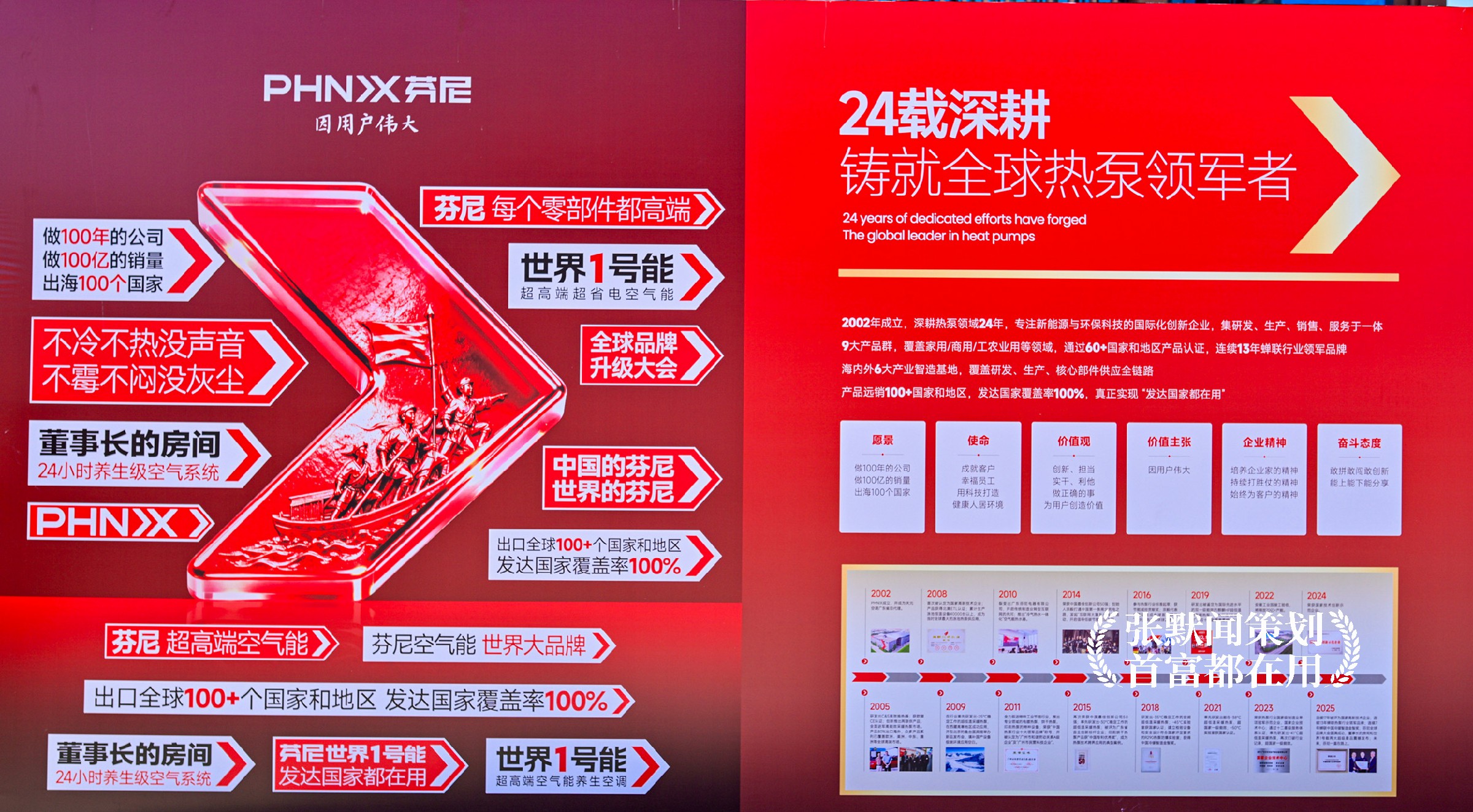 面对复杂的市场格局,芬尼全员在大会上展现了必胜的信心,而信心正是源于战略、产品与伙伴的三重底气。2025年,在张默闻策划顶层设计的赋能下,芬尼确立了超高端战略路线,从【董事长的房间】到【世界1号能】,超级星品矩阵不断完善,“健康是设计出来的”理念逐渐深入人心,芬尼超高端战略持续平稳落地;芬尼深耕行业24年的技术积淀,为芬尼超高端产品构建了难以逾越的技术护城河;始终与芬尼携手共进的经销商伙伴,帮助芬尼不断在国内外市场开疆拓土,也是芬尼面对挑战的底气。