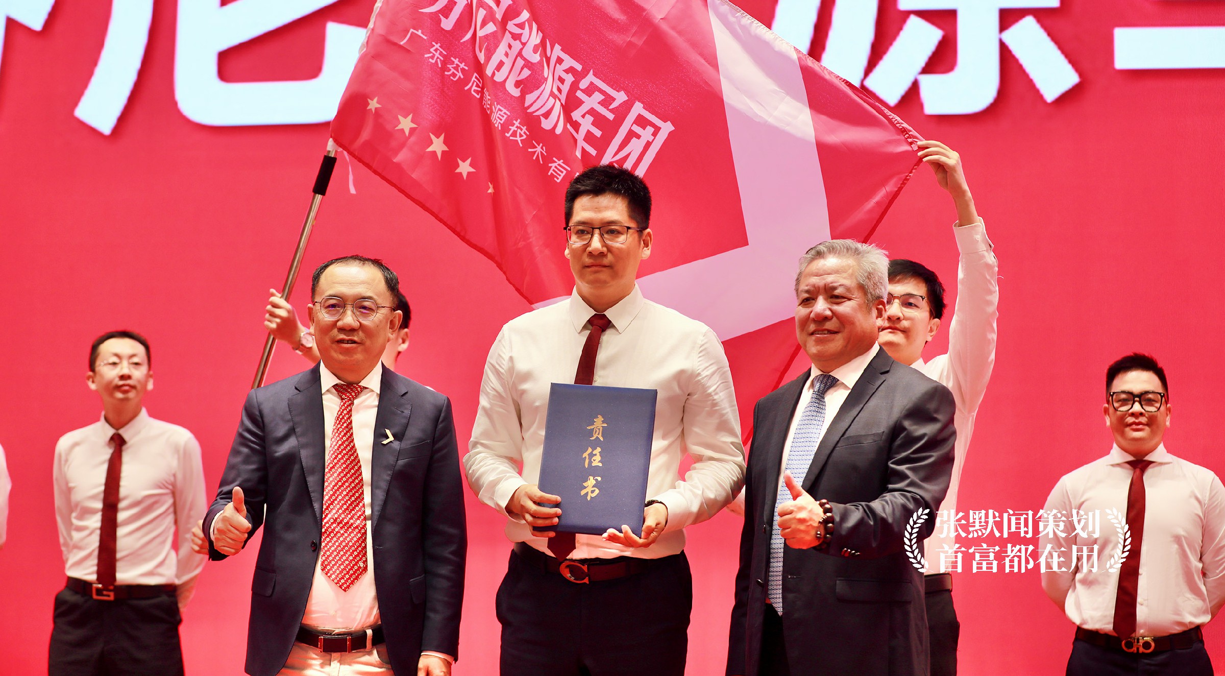 主题创意以长征精神重塑战斗基因。本次大会主题由张默闻这厮操刀创意,紧扣“誓师出征”核心议题,将企业誓师升华为一场凝聚信仰、传递力量的精神洗礼。以“全球”为目标,以“增长”为使命,锚定“新长征”,锁定芬尼2026行动纲领。誓师仪式环节,16大战队轮番登台宣读军令状。作为大会的核心议程,国内一线业务团队、平台支撑团队悉数亮相,泰国芬尼战队跨越时空远程参战支持。军令状宣读,字字千钧;两位董事长与战队合影,帧帧定格荣光。这一环节将目标责任具象化、仪式化,让“担当、实干”的芬尼价值观化为可量化、可兑现的战场承诺。授旗仪式堪称大会高潮。猎猎战旗上,“芬尼红”与战略金句交相辉映,16面旗帜相继挥舞,16支口号此起彼伏,现场热血沸腾。研发、质量、财务、运营等平台团队与一线业务团队同台受旗,彰显“前方打仗、后方护航”的全军一体作战理念。