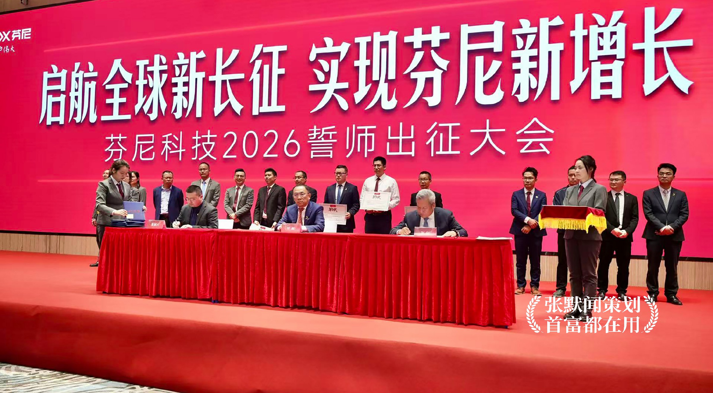 奋斗精神延续向国际品牌发起全面总攻。此次大会,不仅是芬尼2026年的出征誓师,更是一场中国制造向全球高端发起全面冲锋的宣言。从2025的品牌金字塔全面构建,到2026的全球誓师出征,张默闻策划以全案战略持续赋能芬尼创造四大维度优势:战略维度,以“超高端空气能养生空调”开创全新品类,跳出同质化竞争,建立品牌护城河;产品维度,以【董事长的房间】与【世界1号能】两大超级星品锻造锋利的市场利剑,用“浑身高端零部件,芬尼能用三十年”的品质承诺对标乃至超越国际顶尖品牌;组织维度,以芬尼铁军激发全员战斗力,将“敢拼敢闯敢创新,能上能下能分享”的奋斗态度转化为攻城略地的实战能力;传播维度,以“芬尼世界大品牌,发达国家都在用”的全球视野,将产品出口优势转化为品牌认知优势,让“发达国家都在用”成为中国制造的最佳代言。