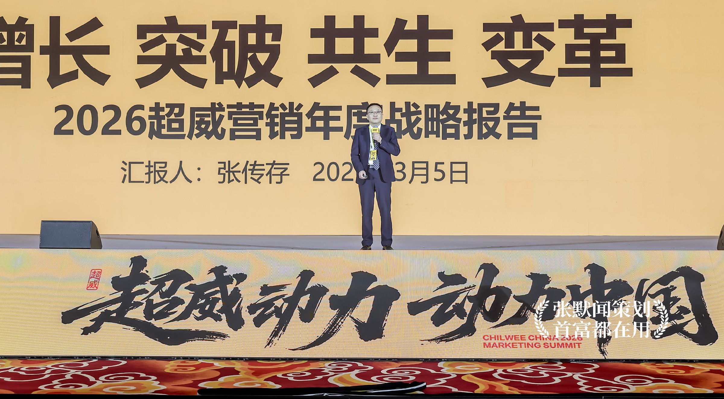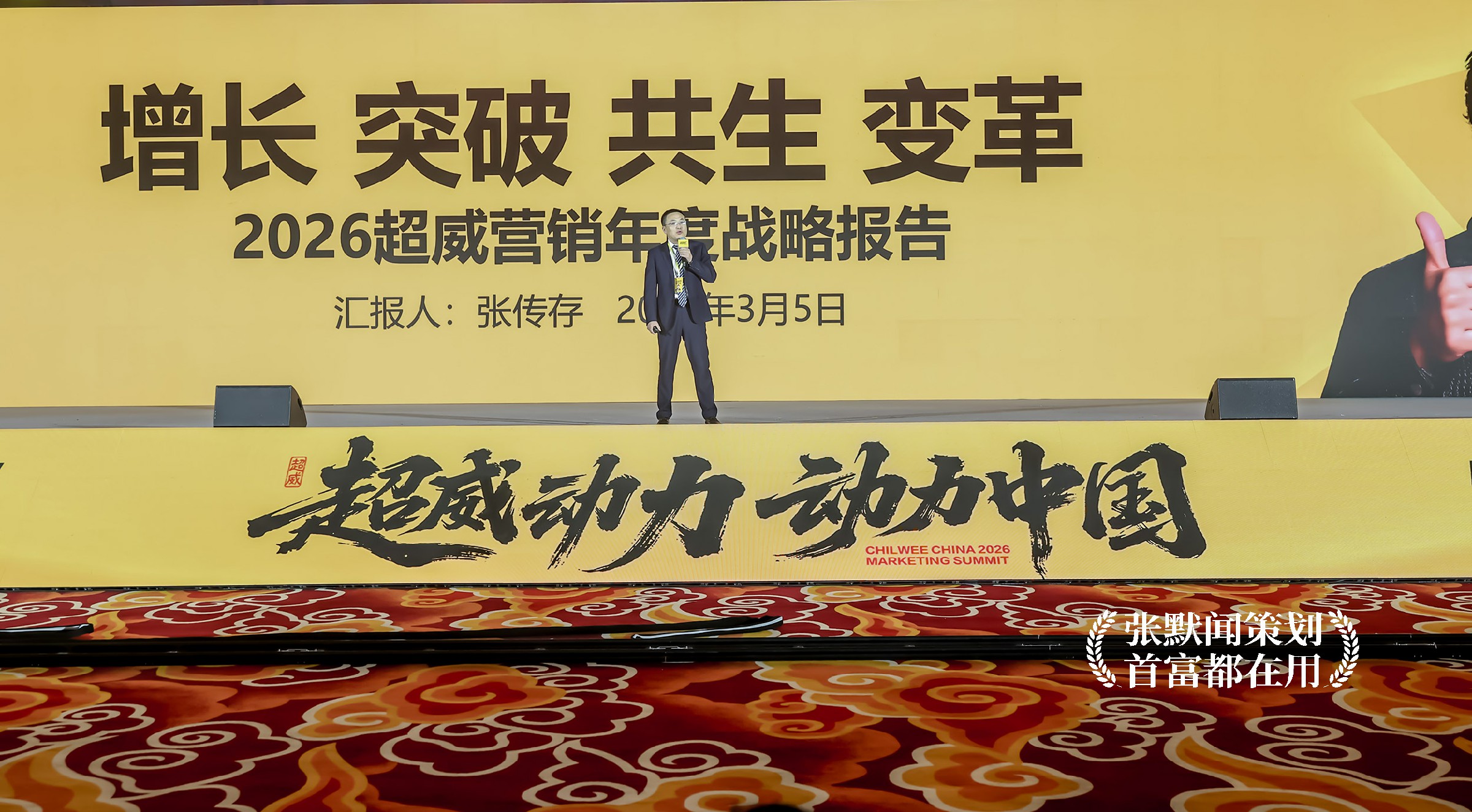 2026年3月5日,“超威动力 动力中国——中国超威2026营销峰会”在中国电池之都浙江长兴盛大启幕,超威品牌全案操盘手、张默闻策划董事长张默闻这厮与行业精英、全国代理商齐聚一堂,共赴一场关乎品质、创新与共赢的行业盛会。峰会上,超威集团副总裁张传存发表《增长 突破 共生 变革——2026超威营销年度战略报告》,以清晰的战略指引和务实的落地路径,为超威点亮2026营销灯塔,为全体超威人及代理商伙伴注入决胜市场的信心与力量。