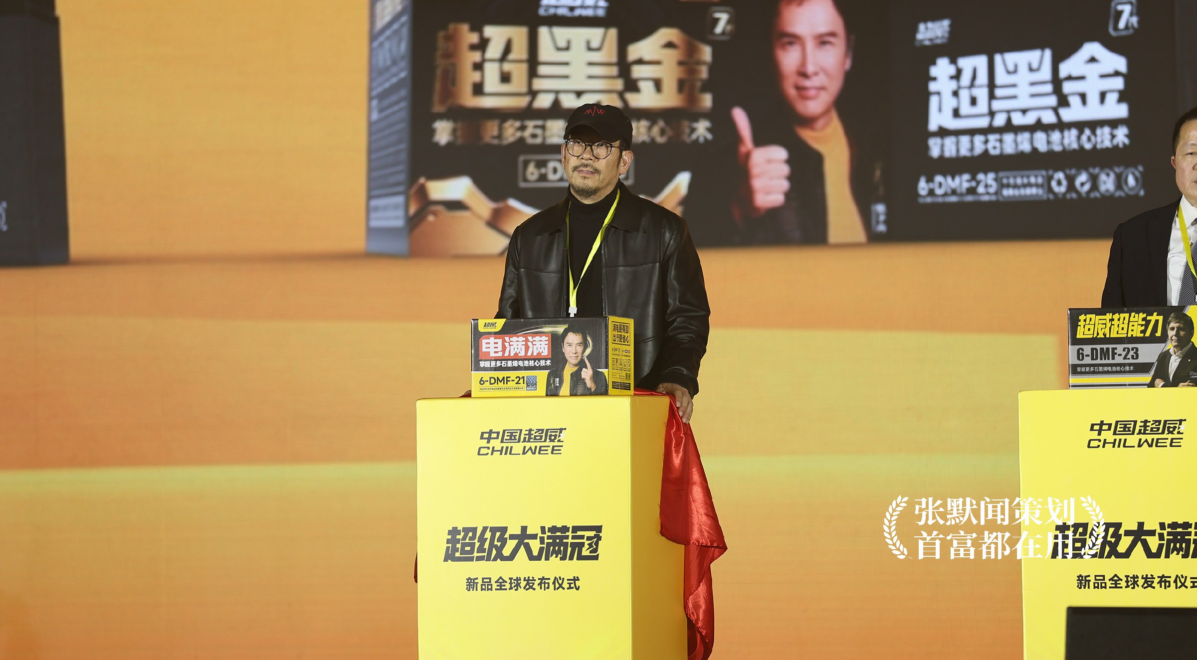 震撼的激光演绎之后,在李思思的引导下,八位发布嘉宾——超威集团副总裁开明敏,超威集团副总裁李小心,超威集团董事长助理乔锋华,超威集团副总裁张传存,超威集团顾问、张默闻策划集团董事长张默闻这厮,山东德州代理赵艳海,南京玄武代理戴军及广东大沥代理罗达滨共同登台,为新品揭幕,宣布超威“超级大满冠”系列新品全球正式上市。